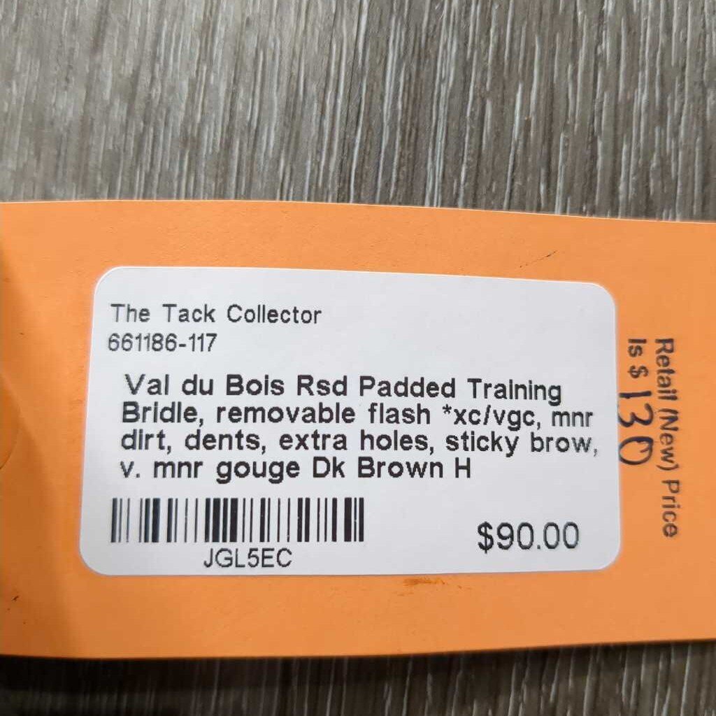 Rsd Padded Training Bridle, removable flash *xc/vgc, mnr dirt, dents, extra holes, sticky brow, v. mnr gouge