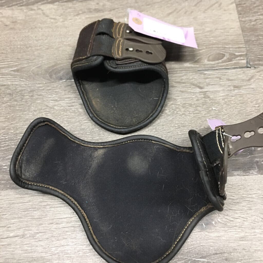 Soft Leather & Neoprene Hind Boots, tabs *gc, clean, sticky edges, lining: dirt, residue, rubs, loose