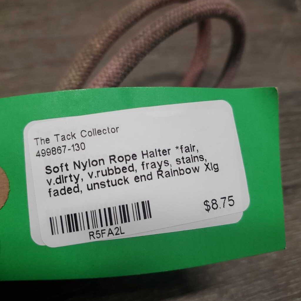 Soft Nylon Rope Halter *fair, v.dirty, v.rubbed, frays, stains, faded, unstuck end