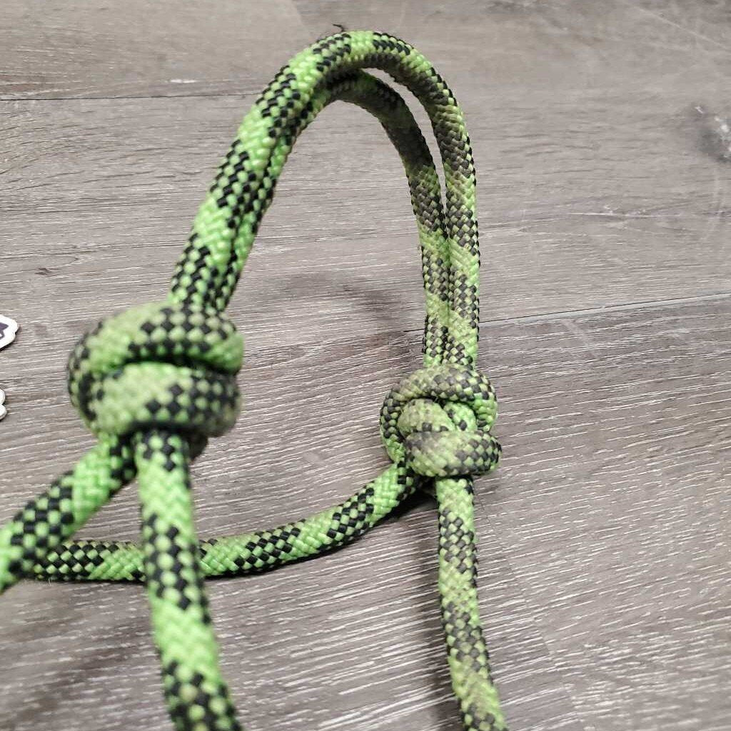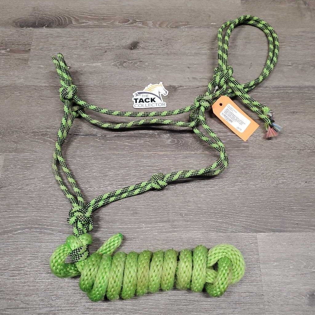 Stiff Nylon Rope Halter, attached Nylon Lead Rope *gc, dirt, hair, rubs, frays, unconnected ends, stains