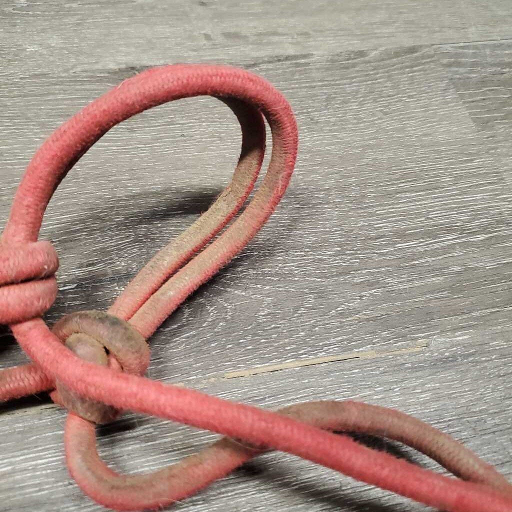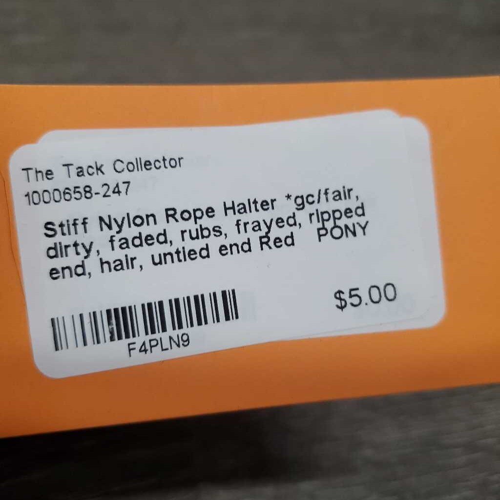Stiff Nylon Rope Halter *gc/fair, dirty, faded, rubs, frayed, ripped end, hair, untied end