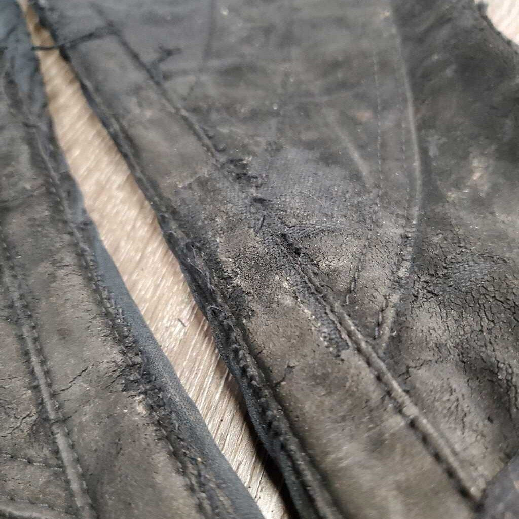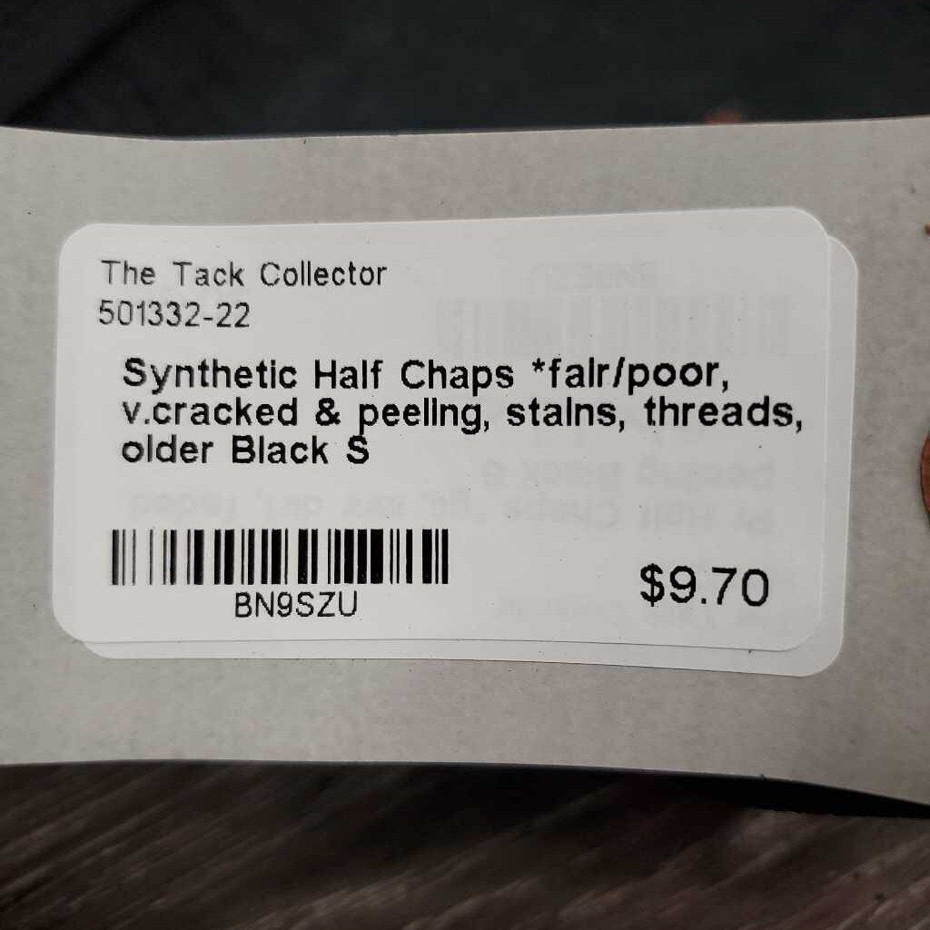 Synthetic Half Chaps *fair/poor, v.cracked & peeling, stains, threads, older