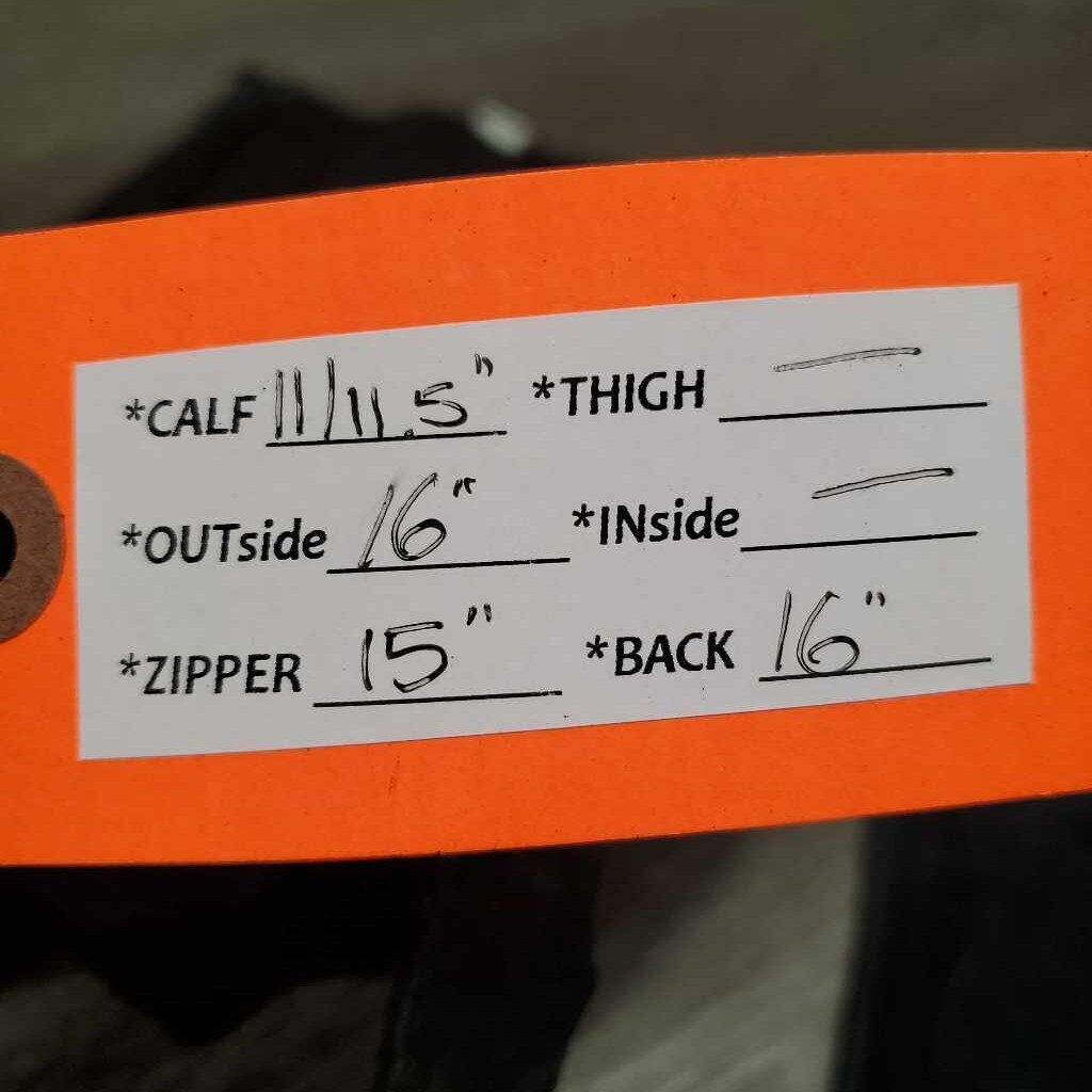 Calf: 11/11.5", Outside: 16", Zipper: 15", Back: 16"