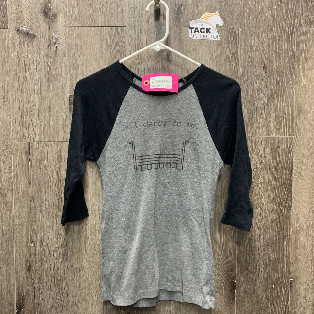 "talk derby to me" LS Cotton T Shirt *vgc, pilly, mnr hair, faded