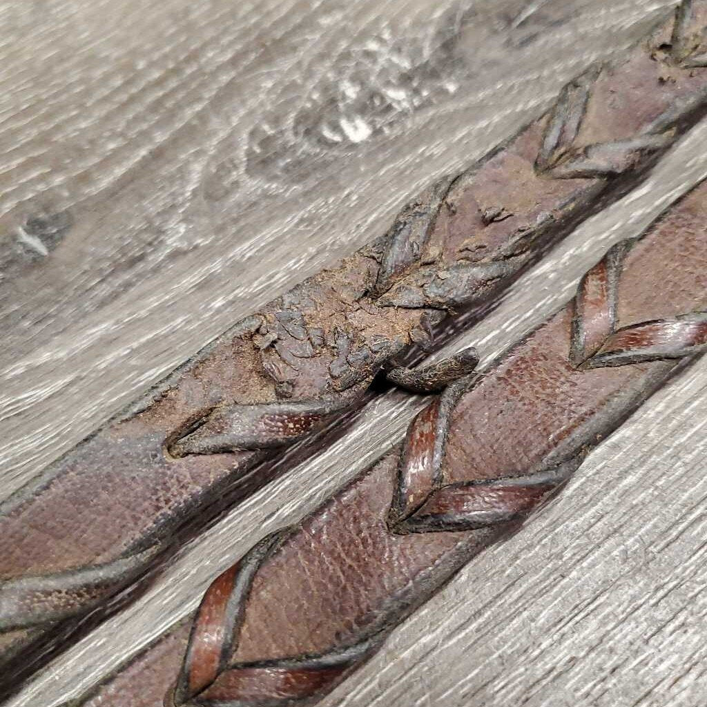 Thick Braided Reins *fair, broken/missing laces, dirt, resideu