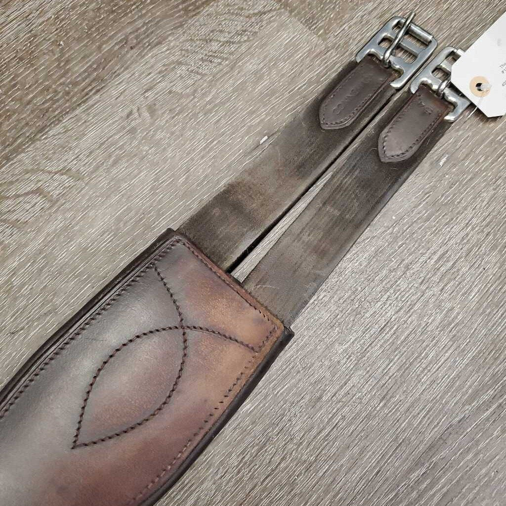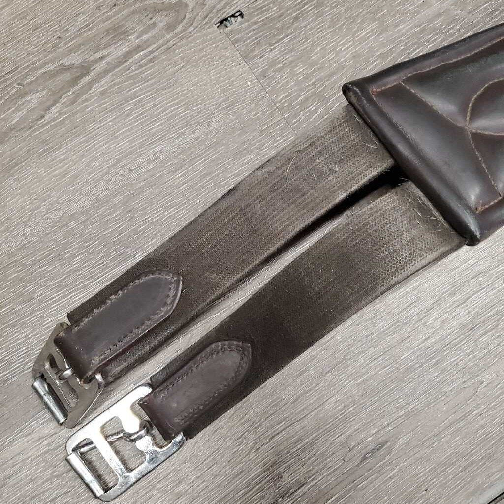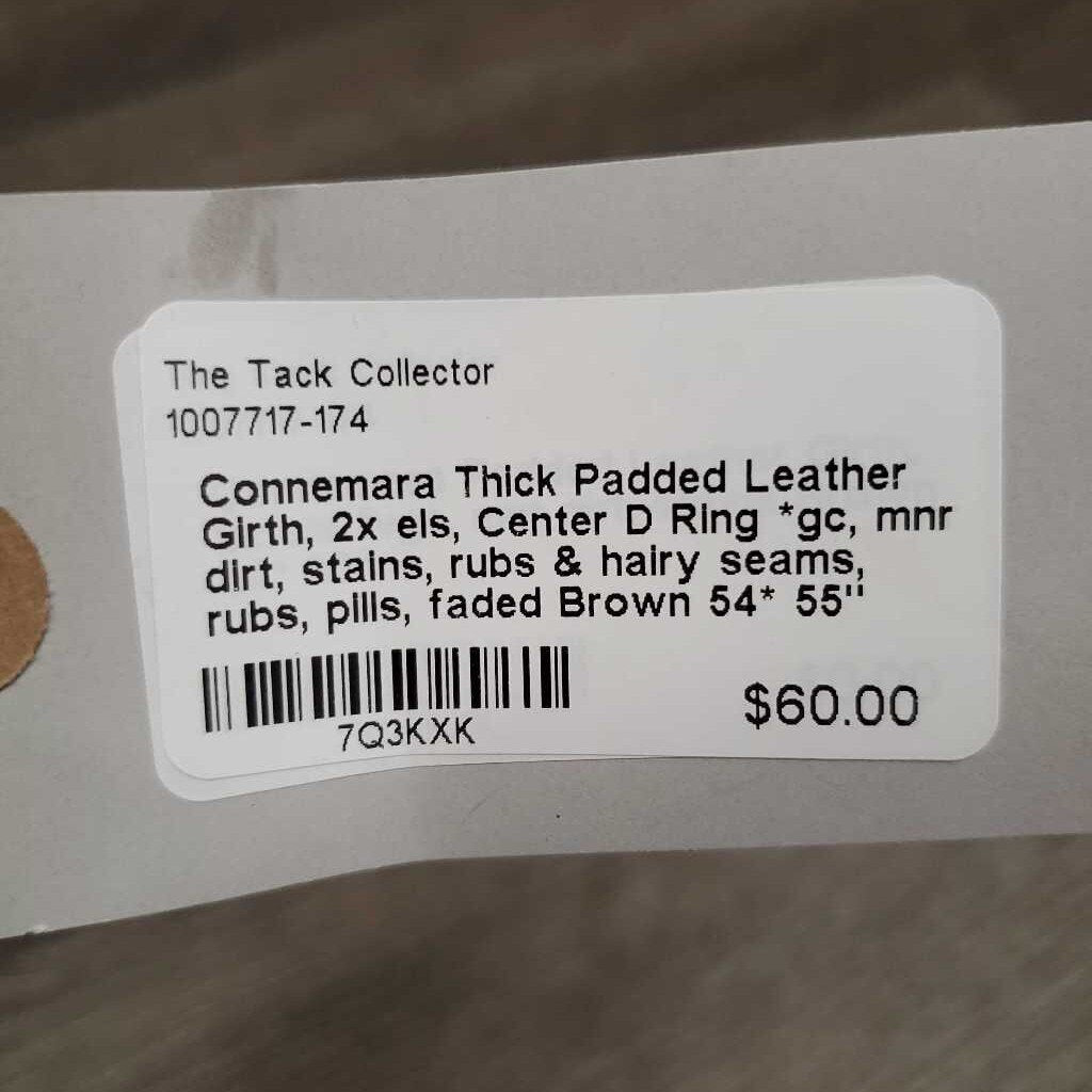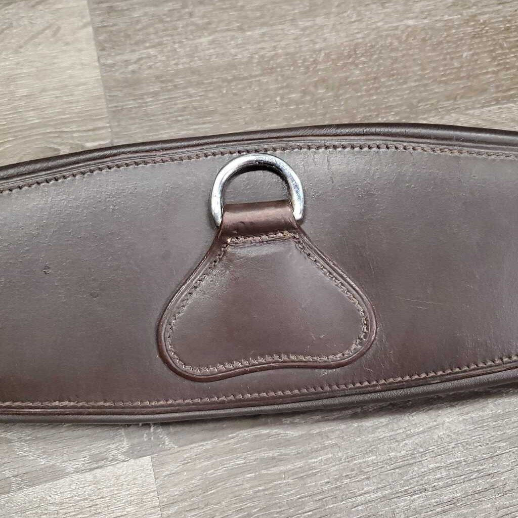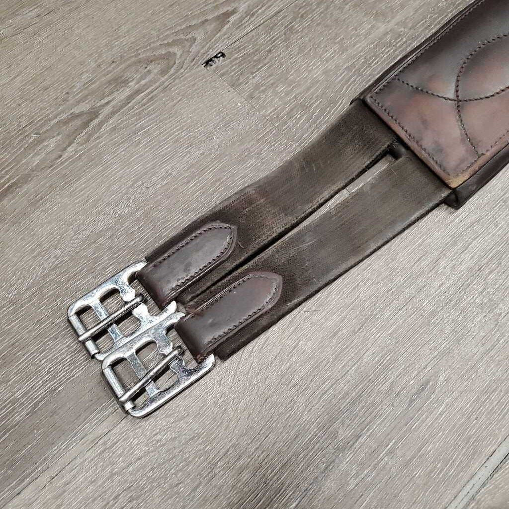 Thick Padded Leather Girth, 2x els, Center D Ring *gc, mnr dirt, stains, rubs & hairy seams, rubs, pills, faded