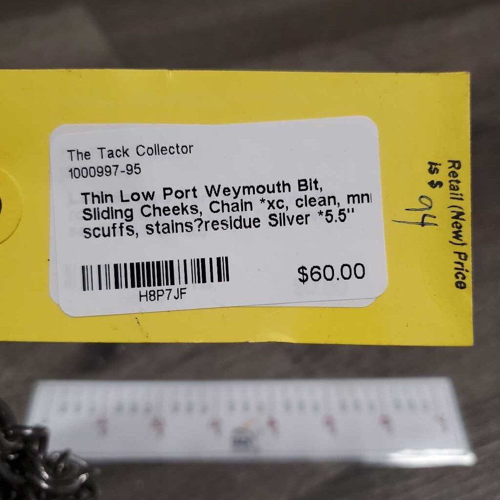 Thin Low Port Weymouth Bit, Sliding Cheeks, Chain *xc, clean, mnr scuffs, stains?residue