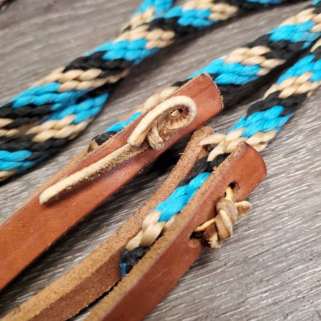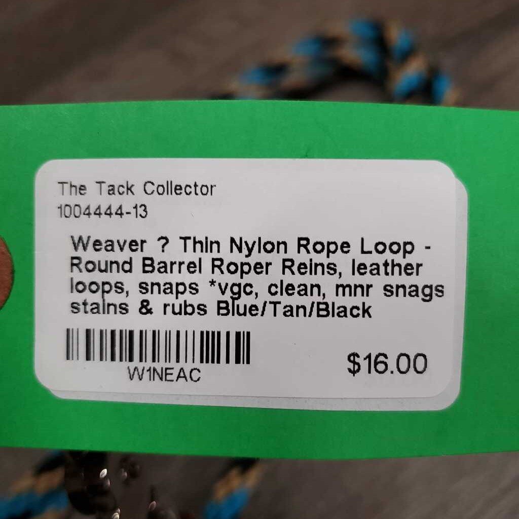 Thin Nylon Rope Loop - Round Barrel Roper Reins, leather loops, snaps *vgc, clean, mnr snags, stains & rubs