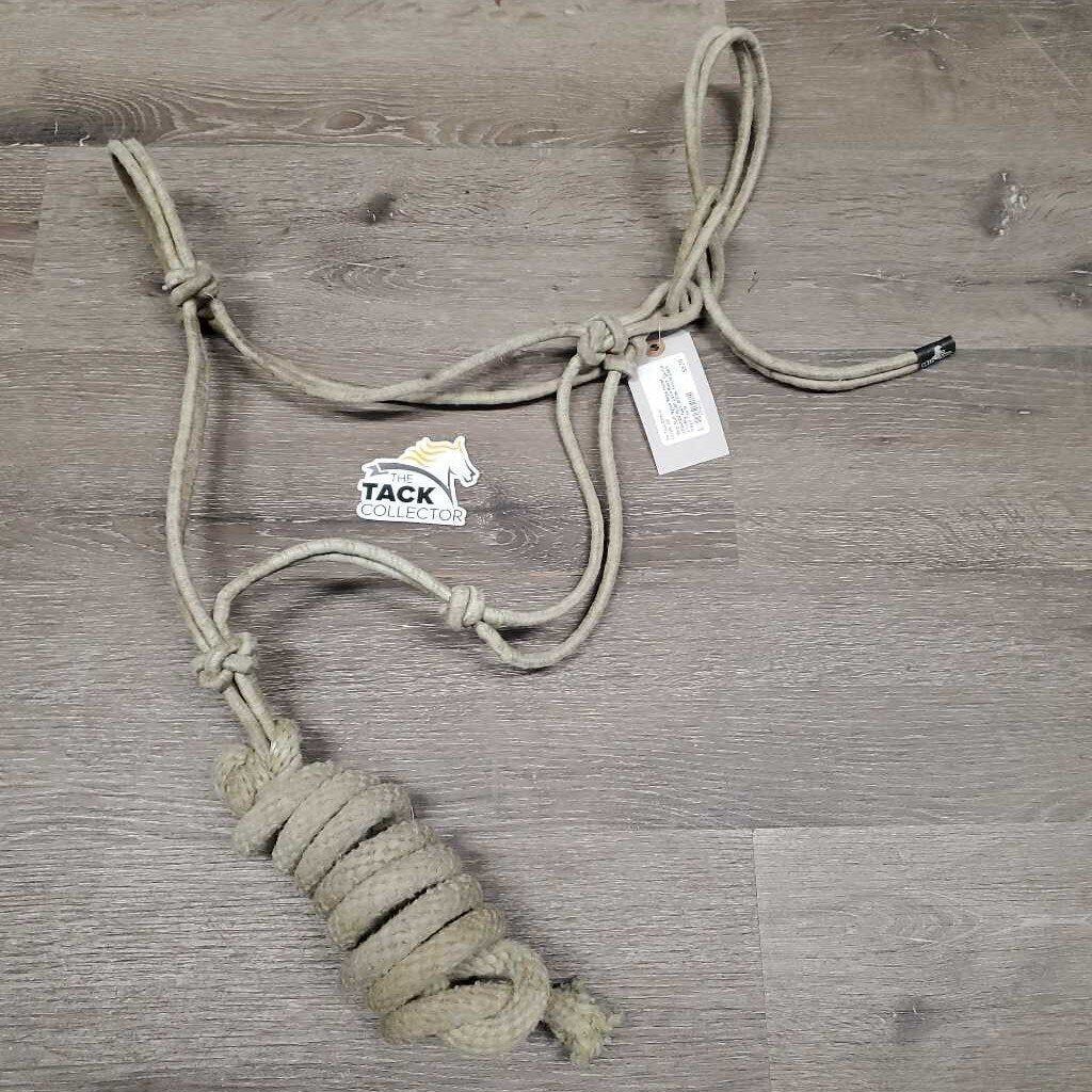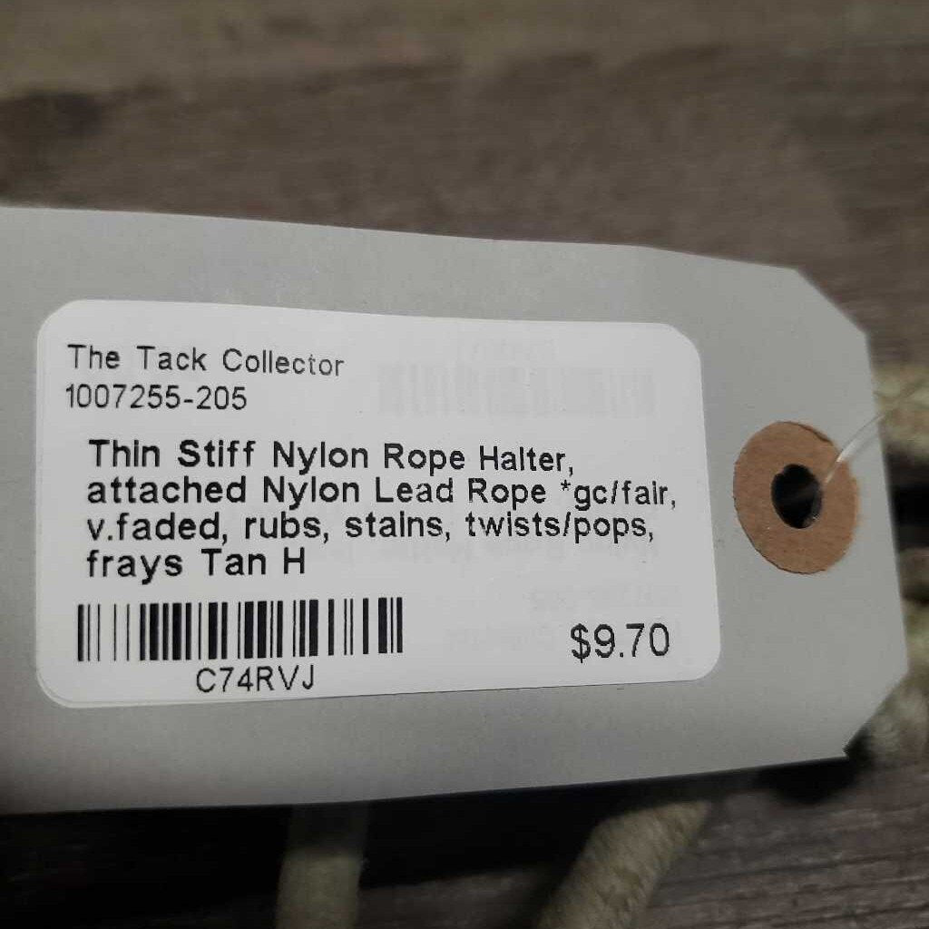 Thin Stiff Nylon Rope Halter, attached Nylon Lead Rope *gc/fair, v.faded, rubs, stains, twists/pops, frays