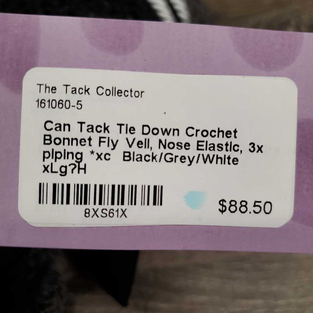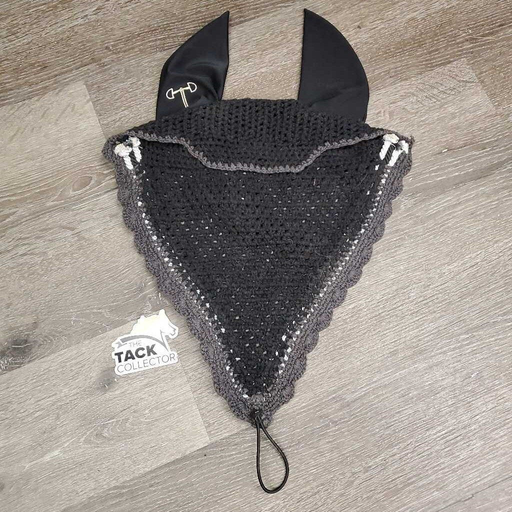 Tie Down Crochet Bonnet Fly Veil, Nose Elastic, 3x piping *xc
