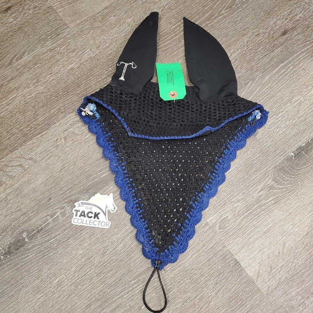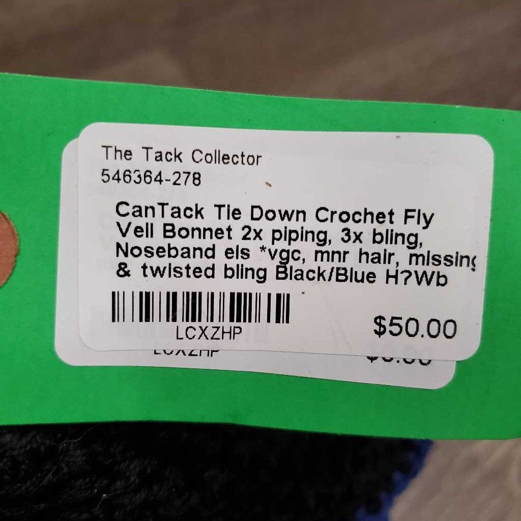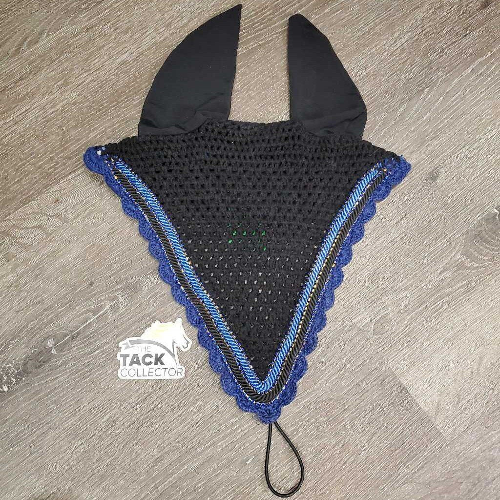 Tie Down Crochet Fly Veil Bonnet 2x piping, 3x bling, Noseband els *vgc, mnr hair, missing & twisted bling