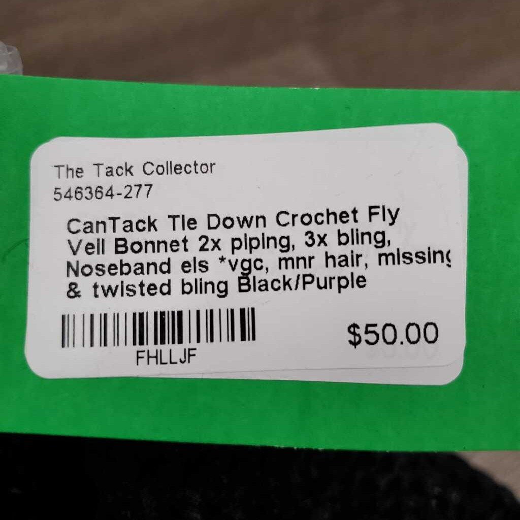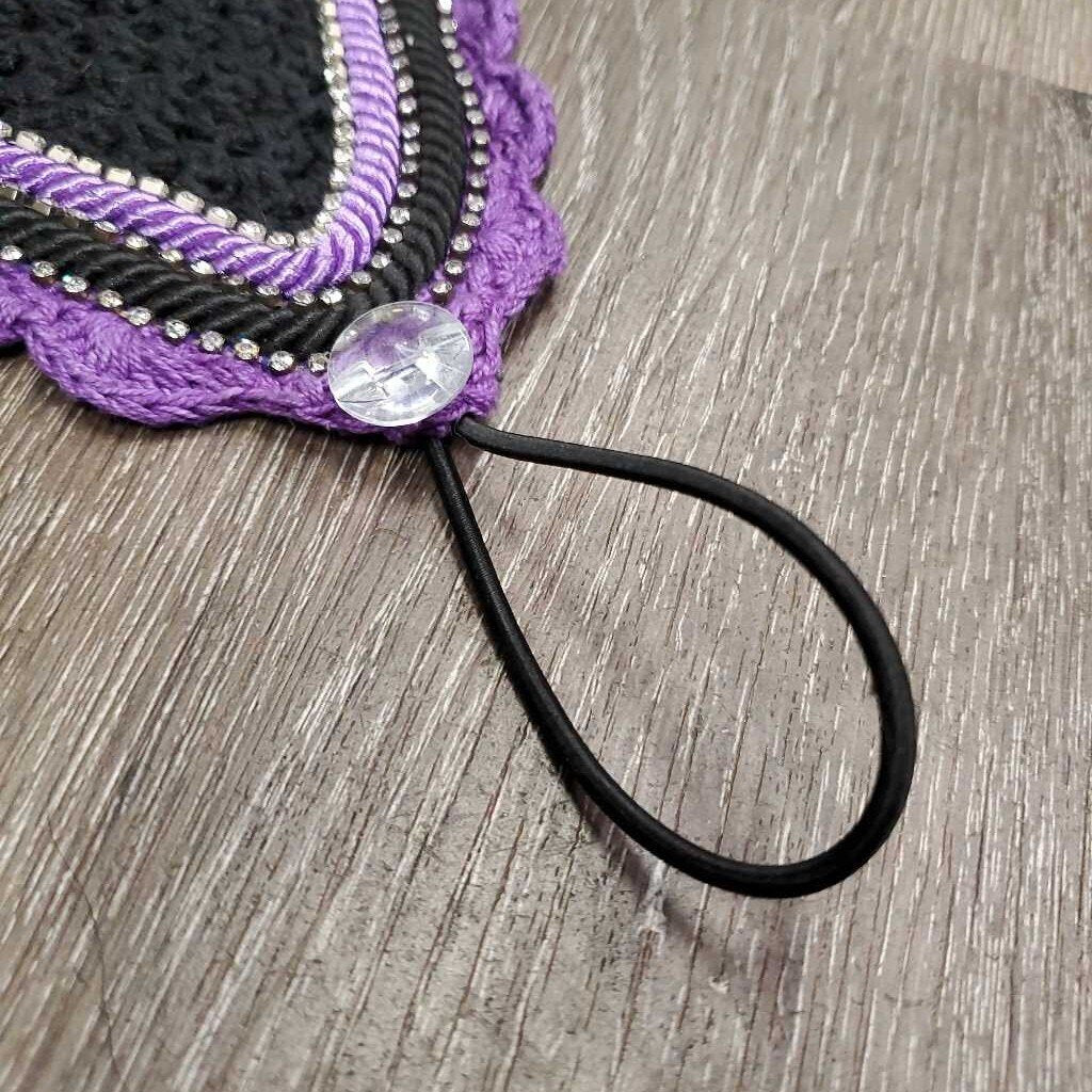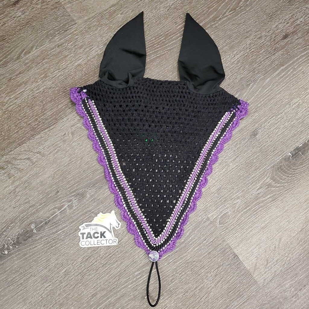 Tie Down Crochet Fly Veil Bonnet 2x piping, 3x bling, Noseband els *vgc, mnr hair, missing & twisted bling