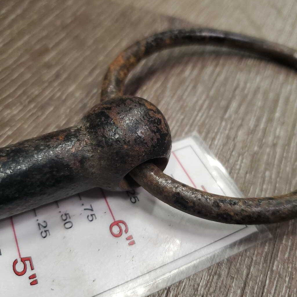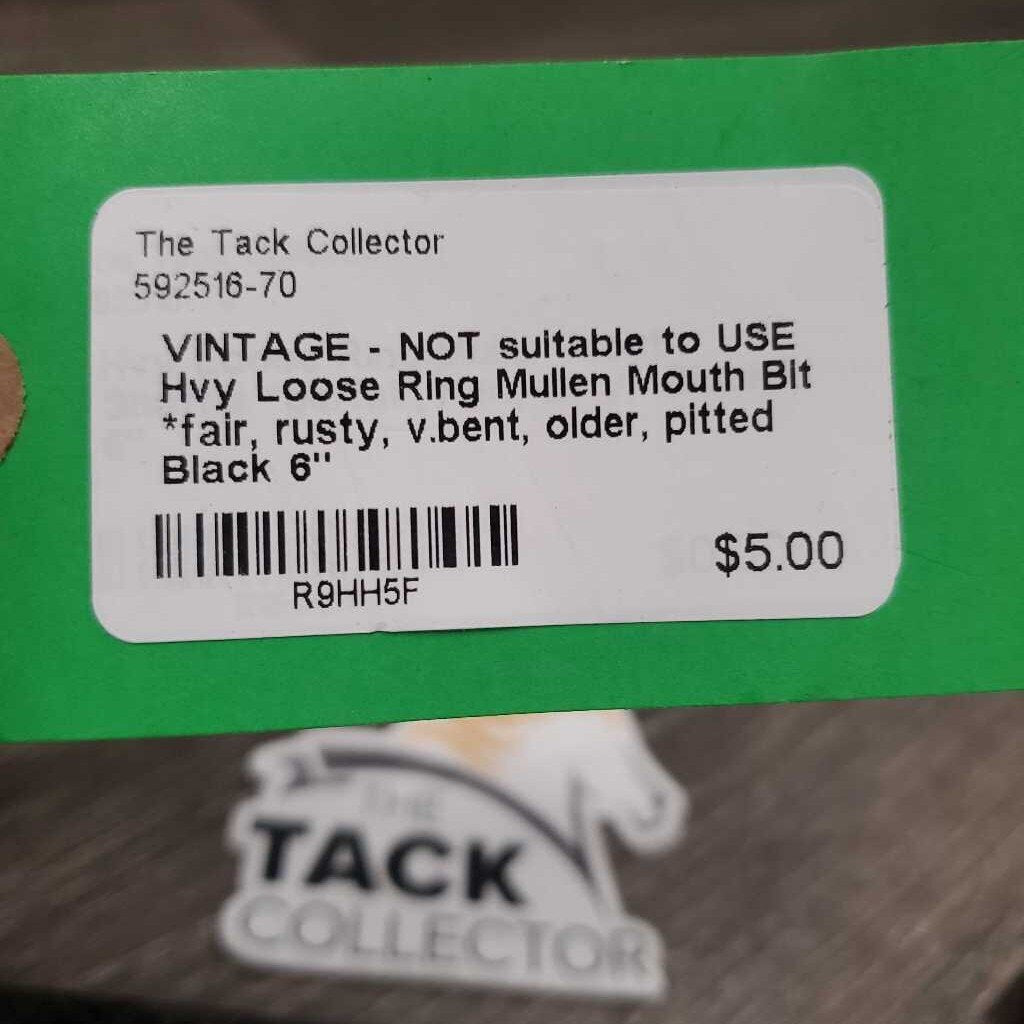 VINTAGE - NOT suitable to USE Hvy Loose Ring Mullen Mouth Bit *fair, rusty, v.bent, older, pitted