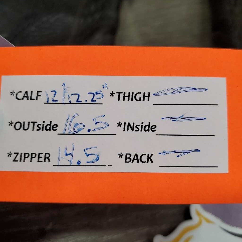 Calf: 12/12.5", Outside: 16.5", Zipper: 14.5"