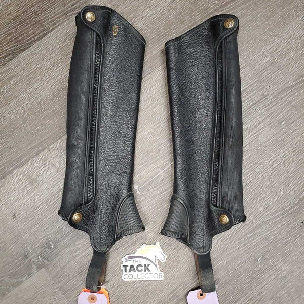 Thick Leather Half Chaps *gc, dirty elastics, missing 1 logo pin. Tredstep Deluxe Size: XS? C12/L14 $50.00