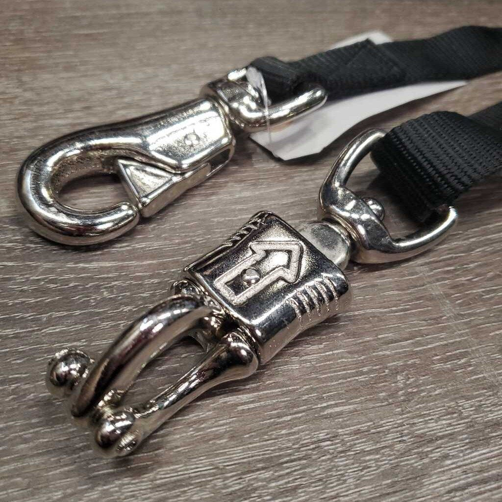 Durable, adjustable nylon cross tie featuring sturdy hardware. Complete with a quick release snap at one end and a bull snap at the other for easy use and attachment.