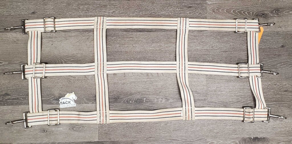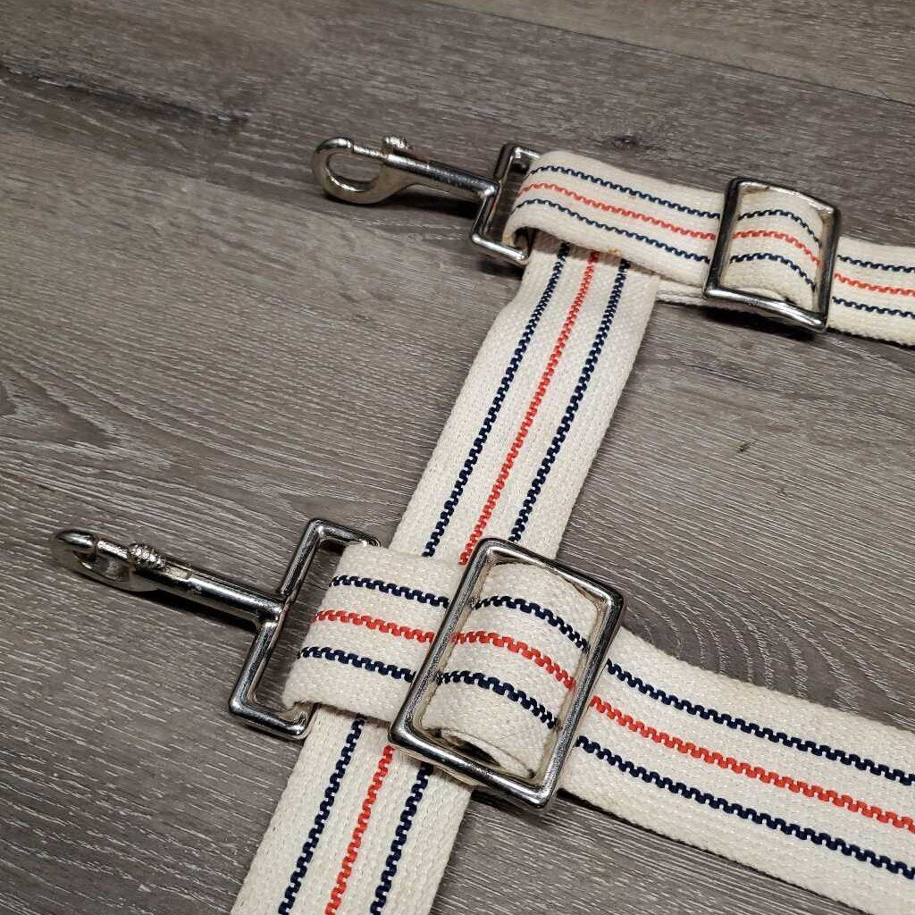 is created from heavy duty cotton webbing with durable hardware for long lasting use. This stall guard features an adjustable front that accommodates a stall door opening from 107 cm to 122 cm wide. Finished with six heavy duty snaps that can be easily installed on most stall fronts.