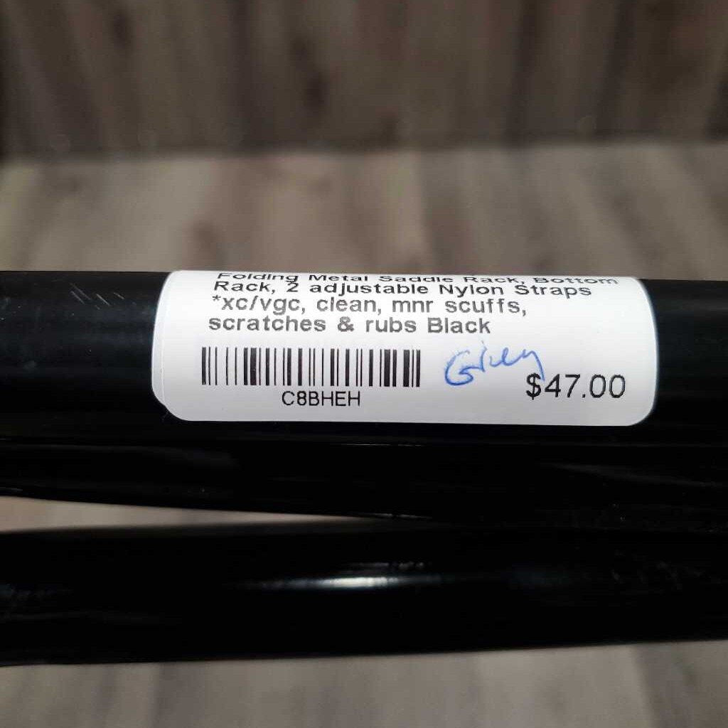 Folding Metal Saddle Rack, Bottom Rack, 2 adjustable Nylon Straps *xc/vgc, clean, mnr scuffs, scratches & rubs