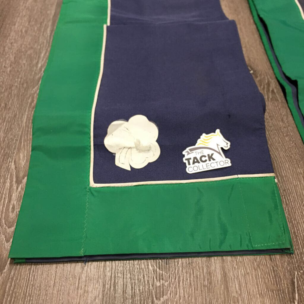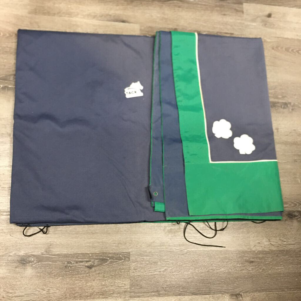 Horse Show Stall Curtain Set: 2 Valances, 3 Panels: 1 sm, 2 Lg, Hvy Carry Bag *gc/fair, older, v.faded, iron on patches, residue