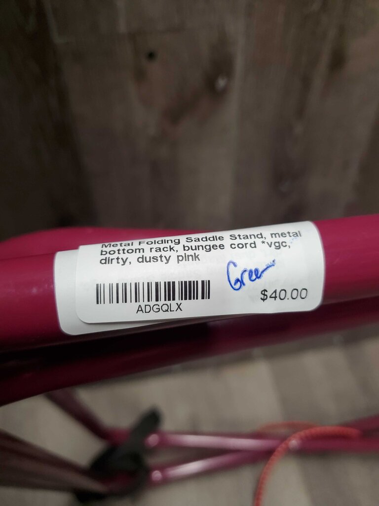 Metal Folding Saddle Stand, metal bottom rack, bungee cord *vgc, dirty, dusty