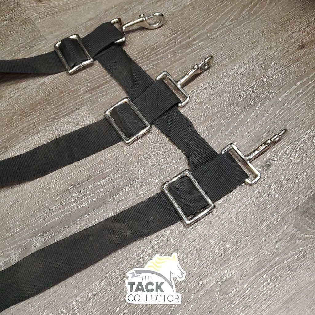 Nylon Stall Guard by Big Dee's is made of 3 strips of 2" solid colored nylon. This is a great temporary way to keep your horse in their stall. Product Details: It will adjust out to 48" 15" tall