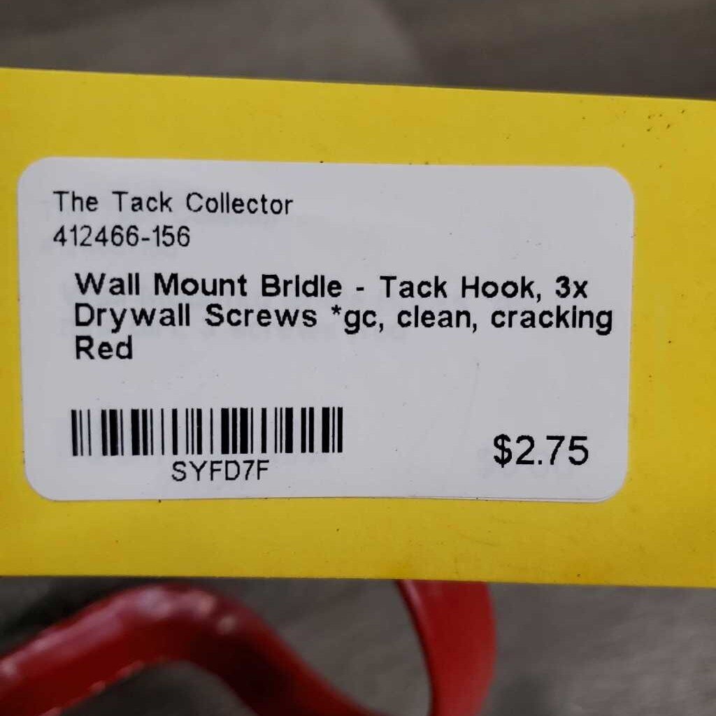 Wall Mount Bridle - Tack Hook, 3x Drywall Screws *gc, clean, cracking