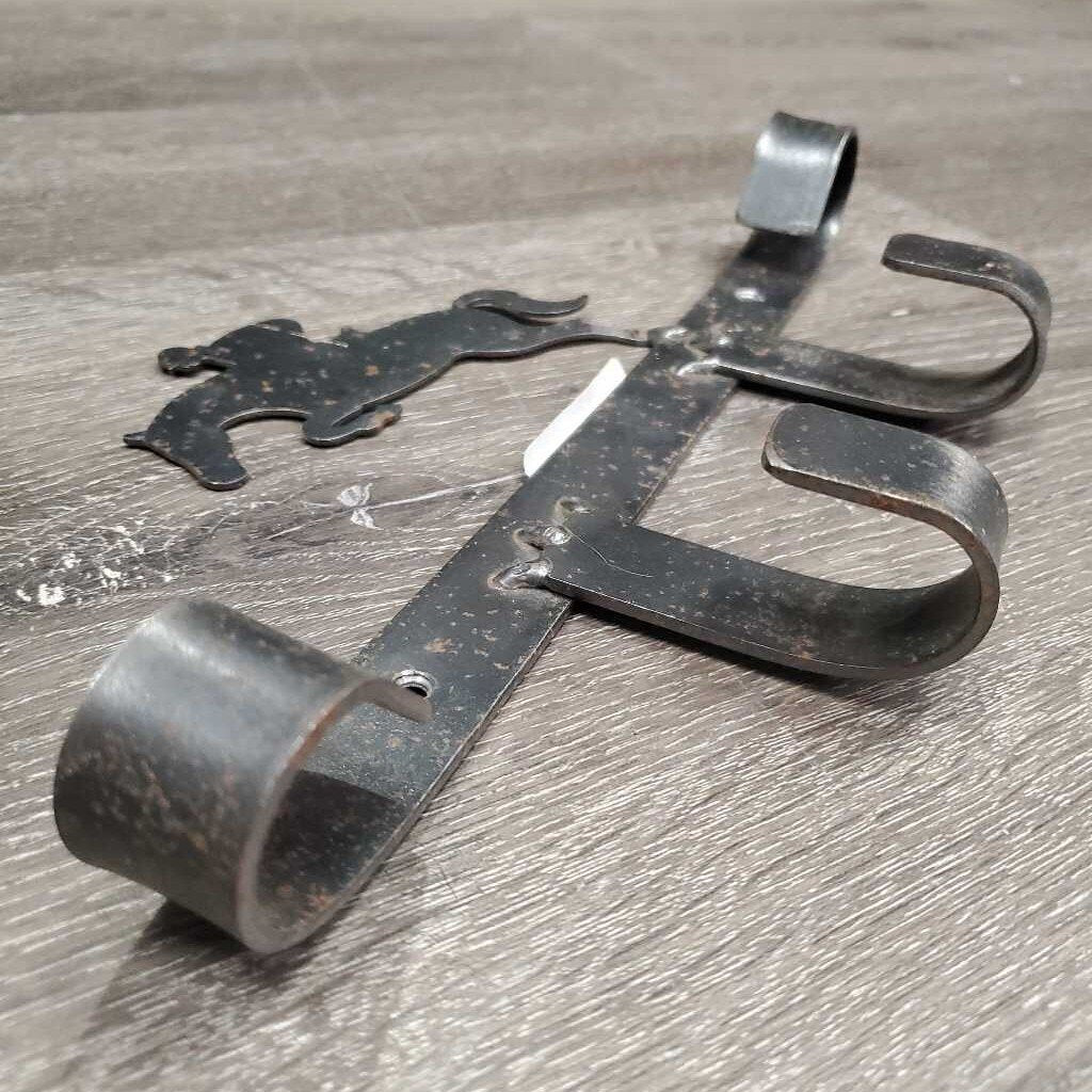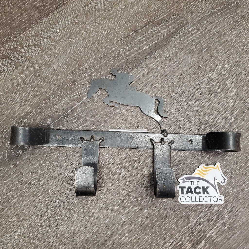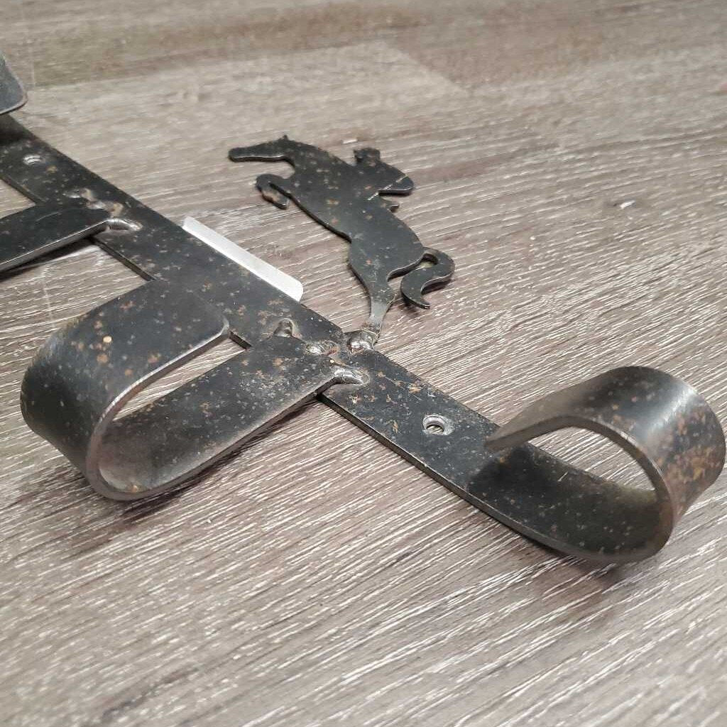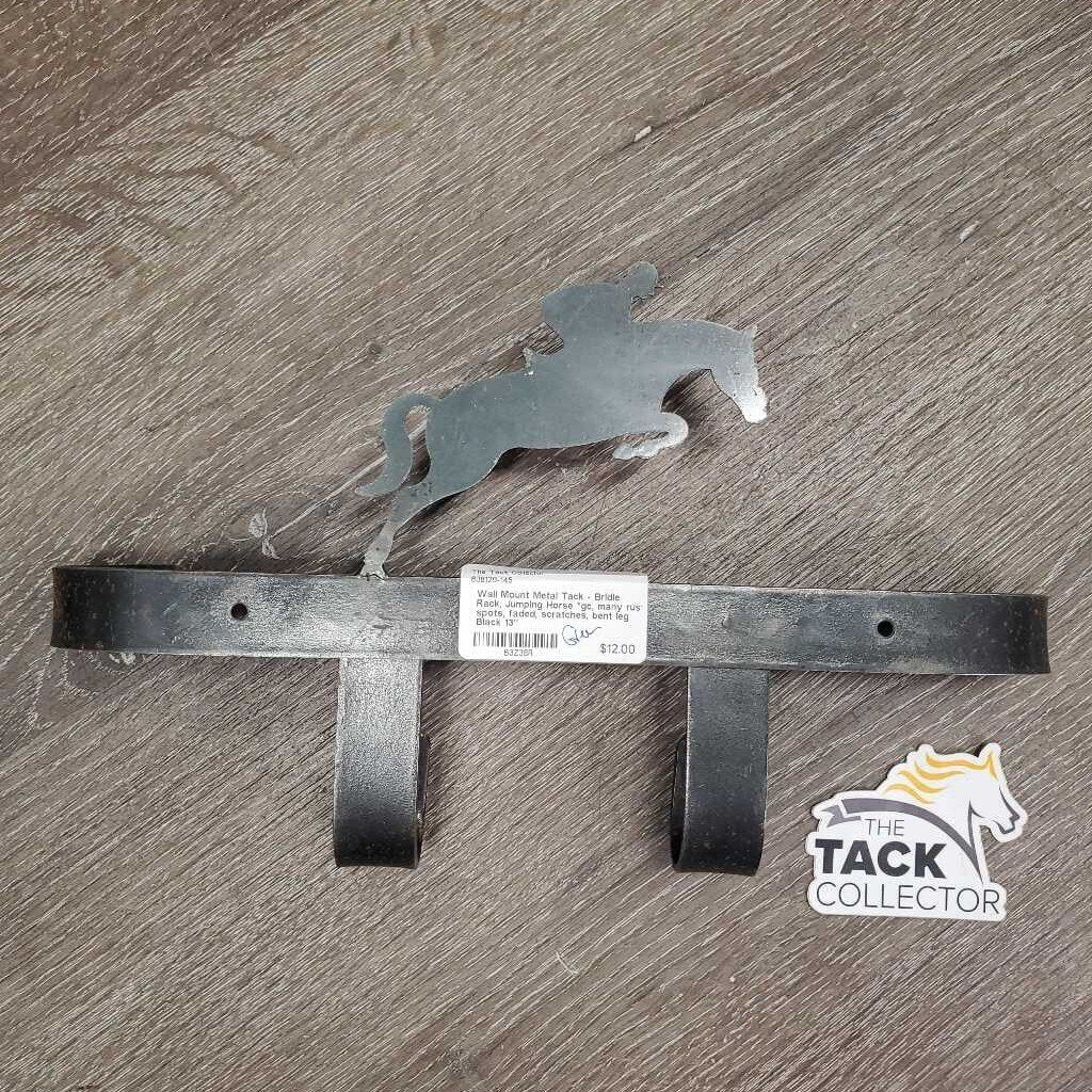 Wall Mount Metal Tack - Bridle Rack, Jumping Horse *gc, many rust spots, faded, scratches, bent leg