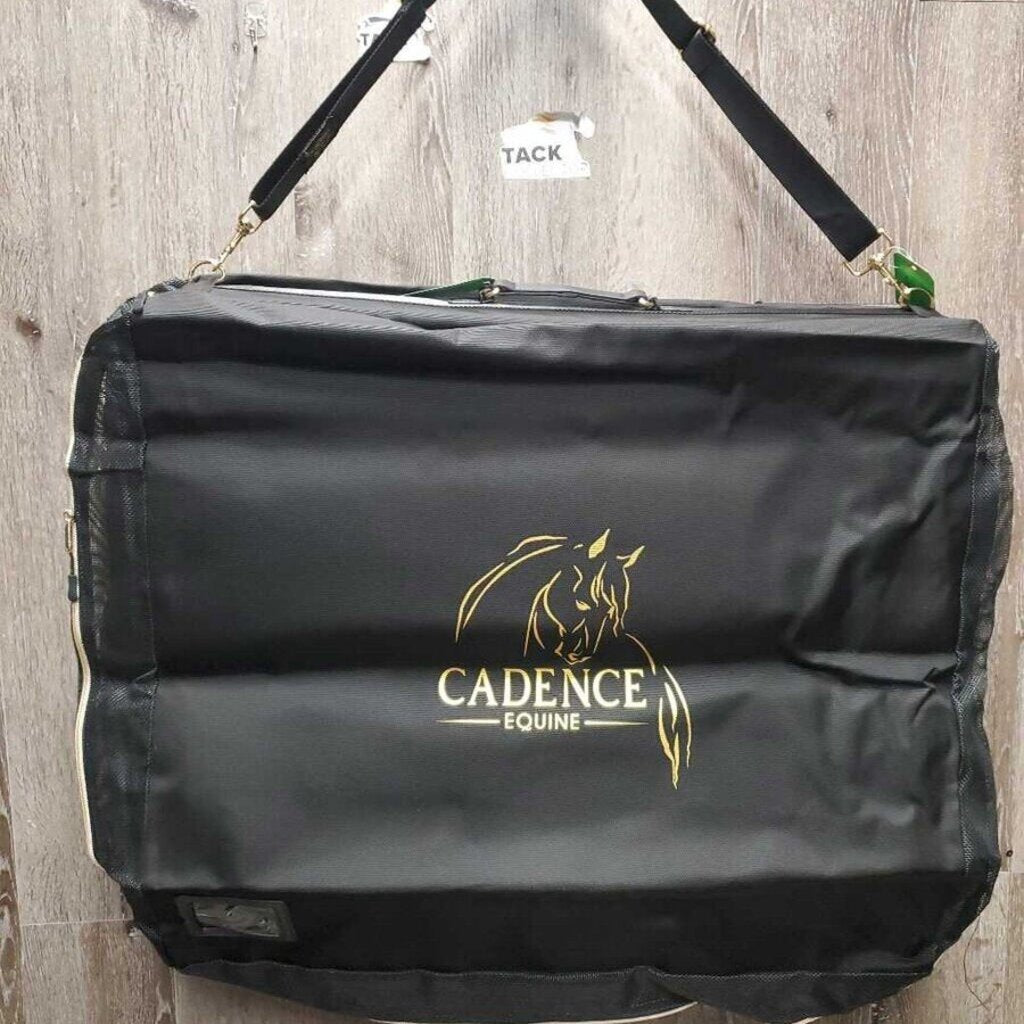Introducing the Cadence Equine Double-Sided Saddle Pad Bag, the ultimate solution for riders seeking a blend of luxury, durability, and functionality. Crafted with unmatched durability and exquisite craftsmanship, this bag ensures your saddle pads and gear are protected and organized. Unmatched Durability Constructed from 1680D Military-Grade Ballistic Nylon for ultimate toughness. Custom YKK Zippers Enjoy smooth and long-lasting zipper functionality with premium YKK zippers. Double-Sided Storage Each side holds up to 4 pads, keeping your gear neatly organized. Breathable Mesh Ensures airflow on all sides to keep your pads fresh. Versatile Carrying Options Choose between a padded shoulder strap, ergonomic leather handle, or convenient stall hanging straps for versatile carrying. Multi-Functional Bag Conveniently stores show sheets, coolers, fly sheets, and additional gear. Saddle Rack Storage Solution Perfect for small spaces when traveling, keeping your equipment orga...