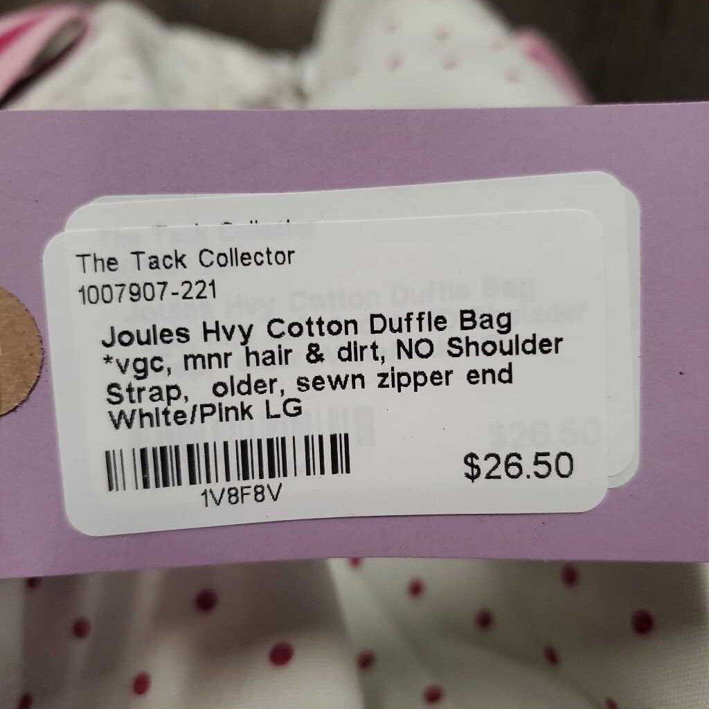 Hvy Cotton Duffle Bag *vgc, mnr hair & dirt, NO Shoulder Strap, older, sewn zipper end