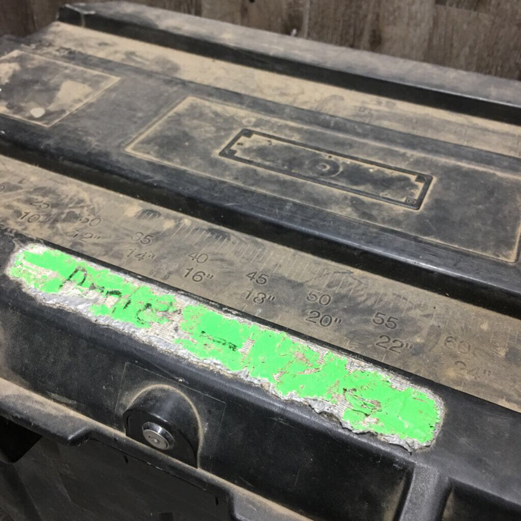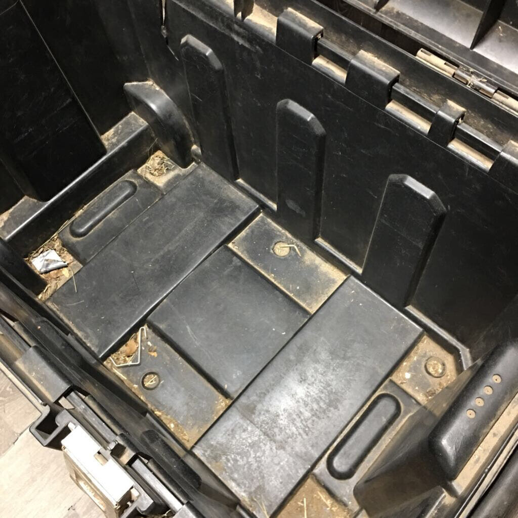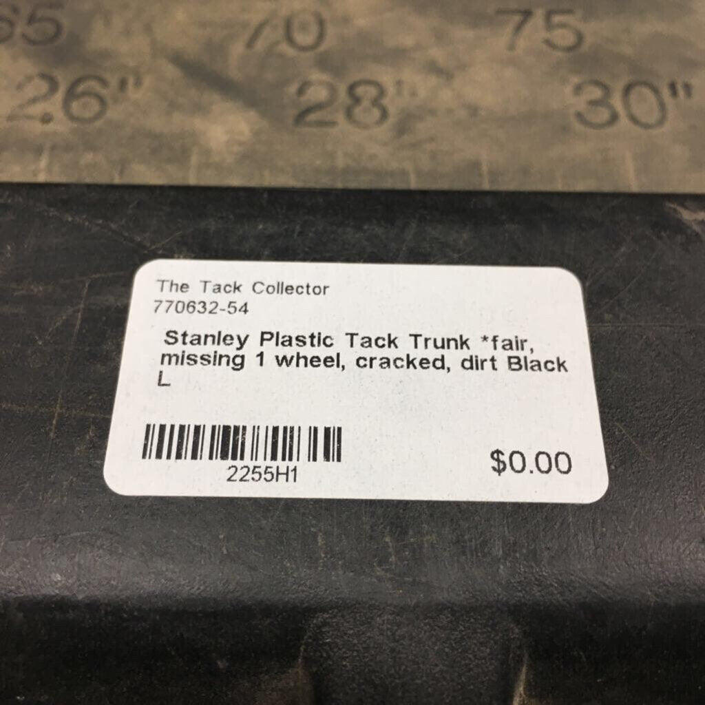 Rolling Plastic Tack Trunk - Box, Pull out Handle, Wheels *fair, cracked, dirty, tape, BROKEN/MISSING: wheel & clasp