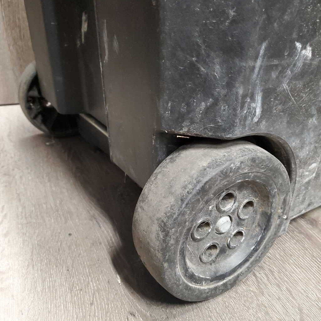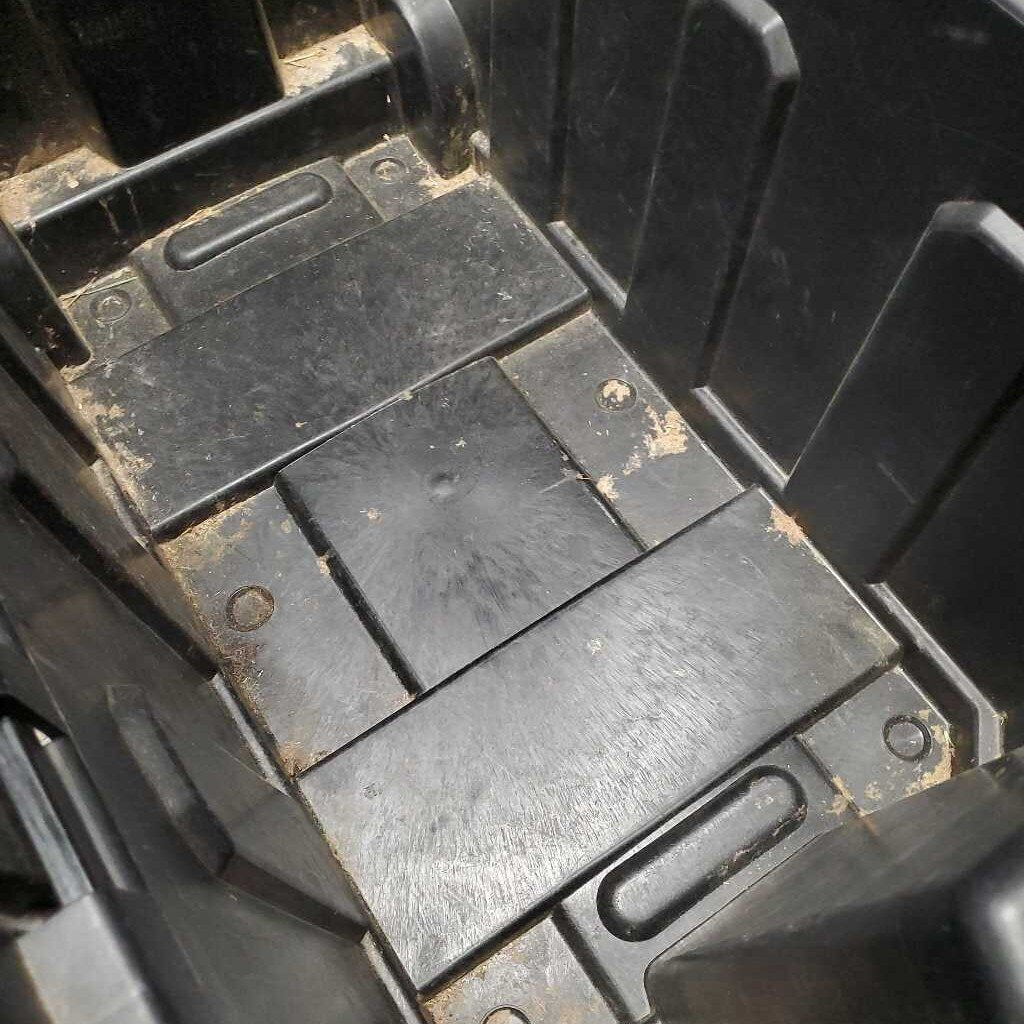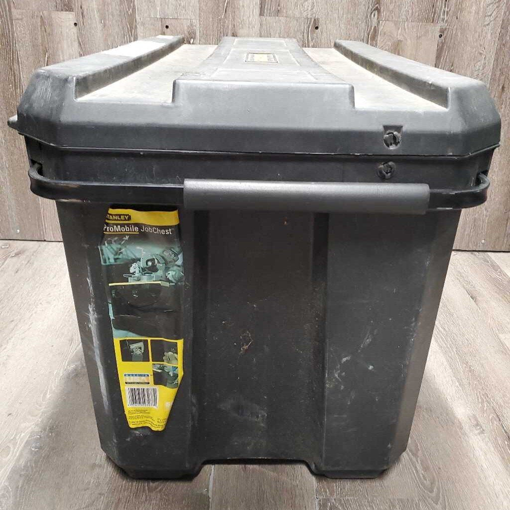 Rolling Plastic Tack Trunk - Box, Pull out Handle, Wheels *No Tray or Keys, dirt, scrapes, tape, tight latches, cracked lid