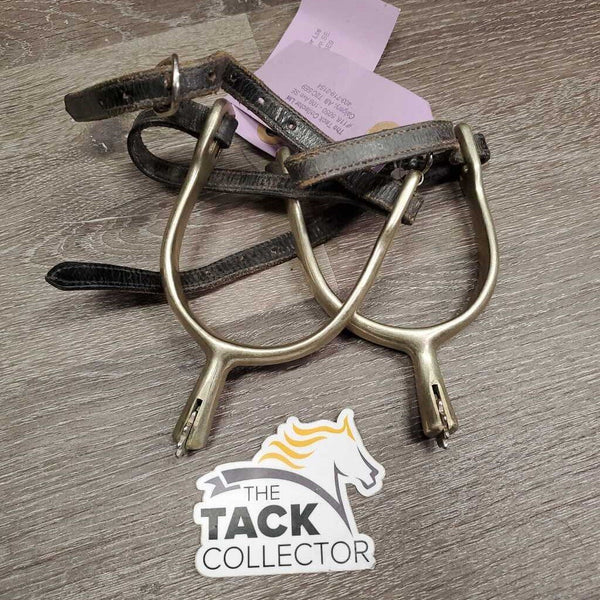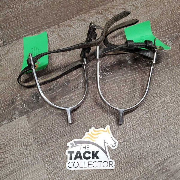 Flat End German Spurs, Narrow Leather Straps *gc, clean, stains, scrapes, xholes, widened HS Sprenger Size: 1" $62.50