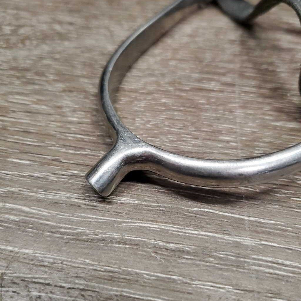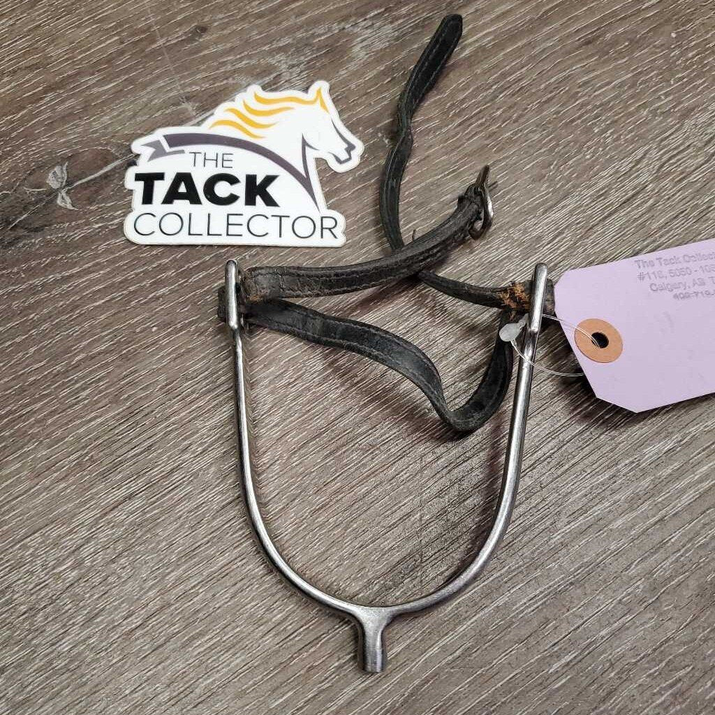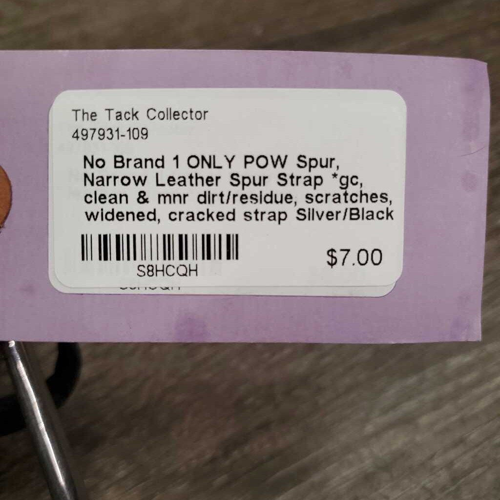 1 ONLY POW Spur, Narrow Leather Spur Strap *gc, clean & mnr dirt/residue, scratches, widened, cracked strap