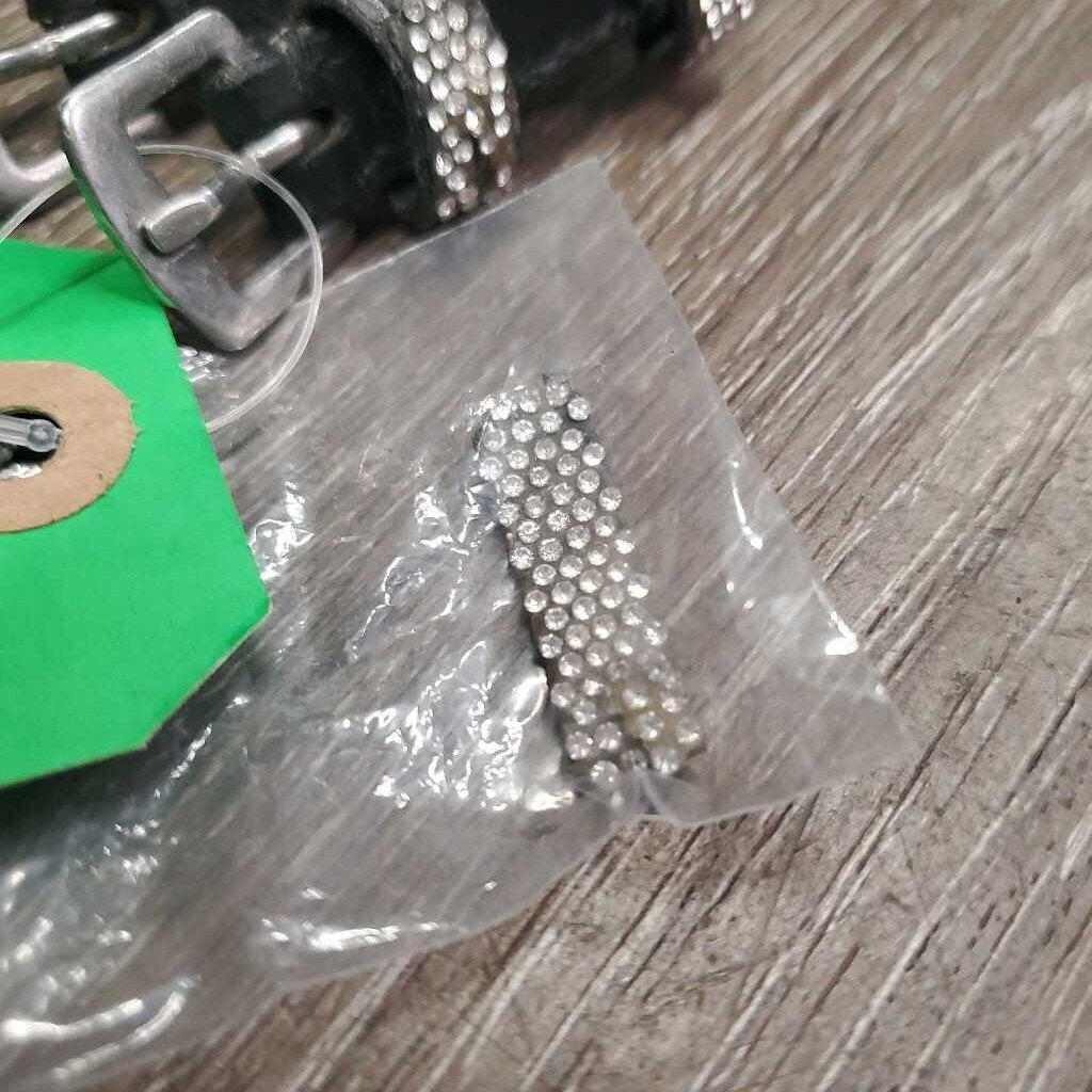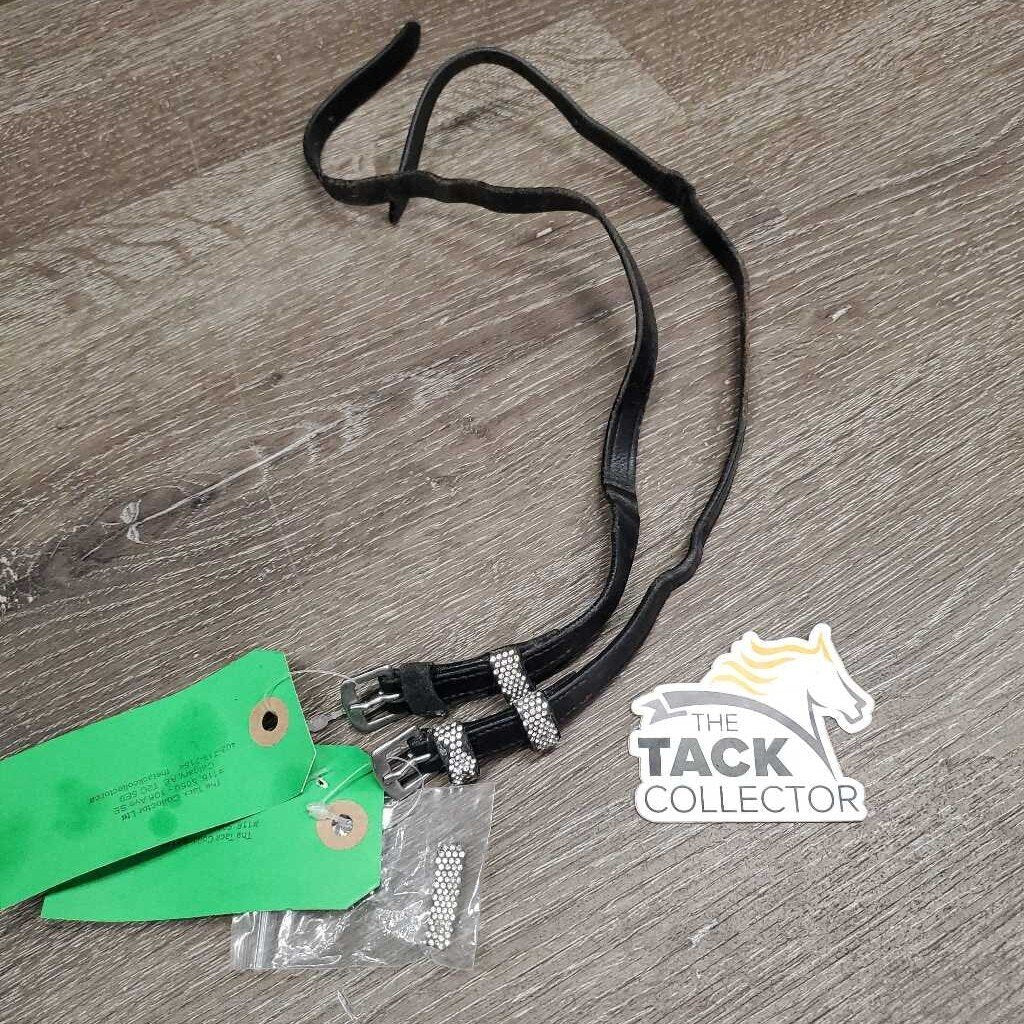2 Leather Spur Straps, Bling *gc, clean, dents, missing & peeled bling, rubs, loose & stretched keepers