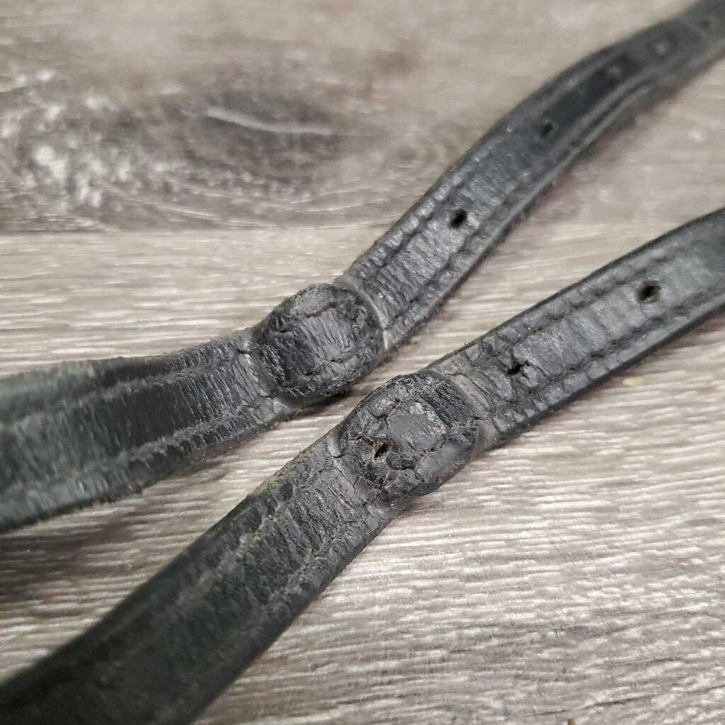 2 Thick Leather Spur Straps *gc, dirt, faded, dents, residue