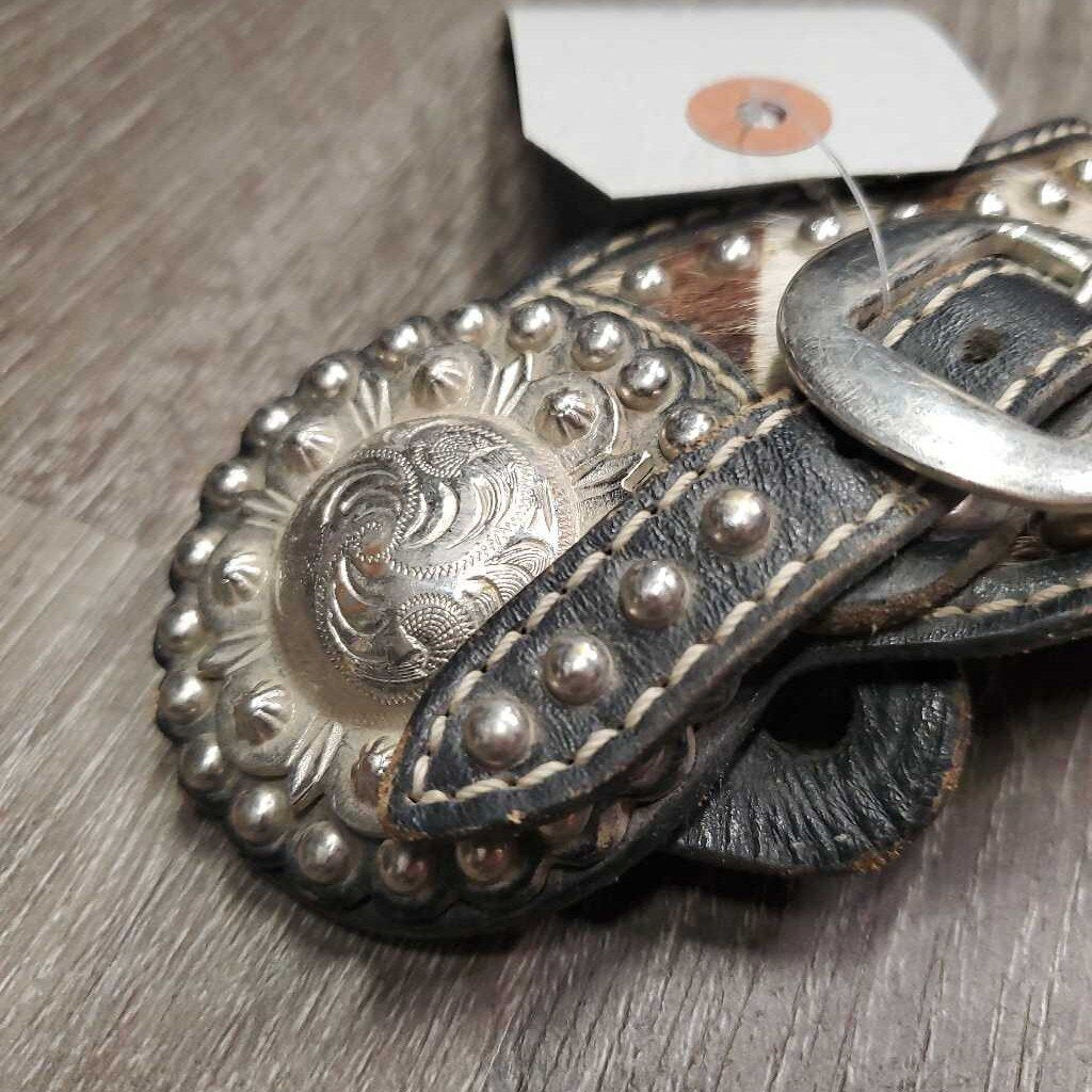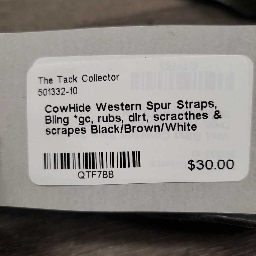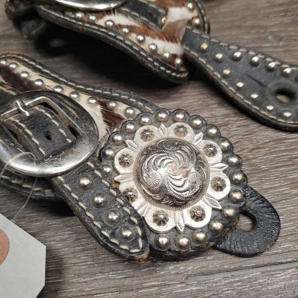 CowHide Western Spur Straps, Bling *gc, rubs, dirt, scracthes & scrapes
