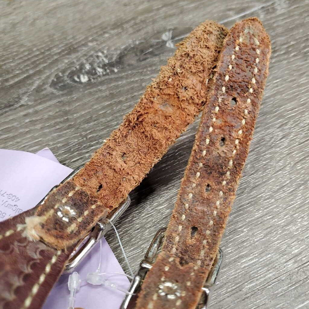 Double Stitched Stamped Leather Western Spur Straps *gc, scrapes, stains, mnr torn holes, rough back