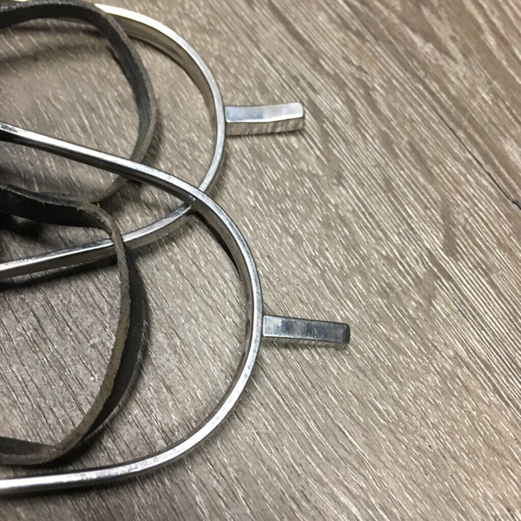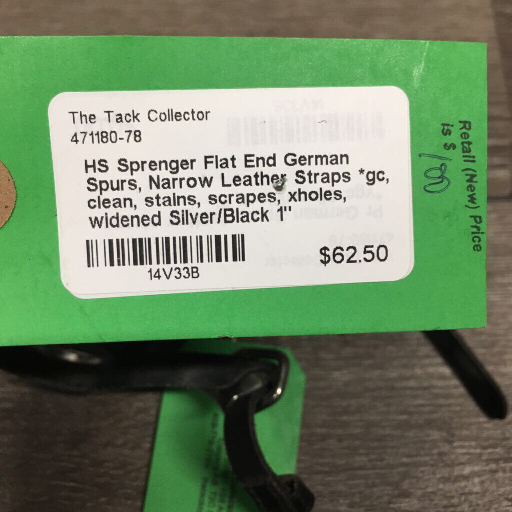 Flat End German Spurs, Narrow Leather Straps *gc, clean, stains, scrapes, xholes, widened