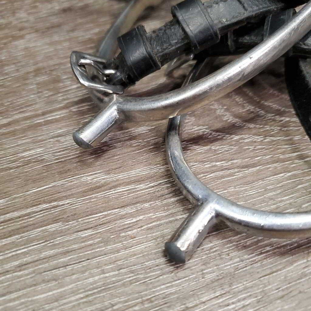 POW Spurs, Narrow Leather Spur Straps *gc, v.rubbed, peeled, scratches, widened, clean