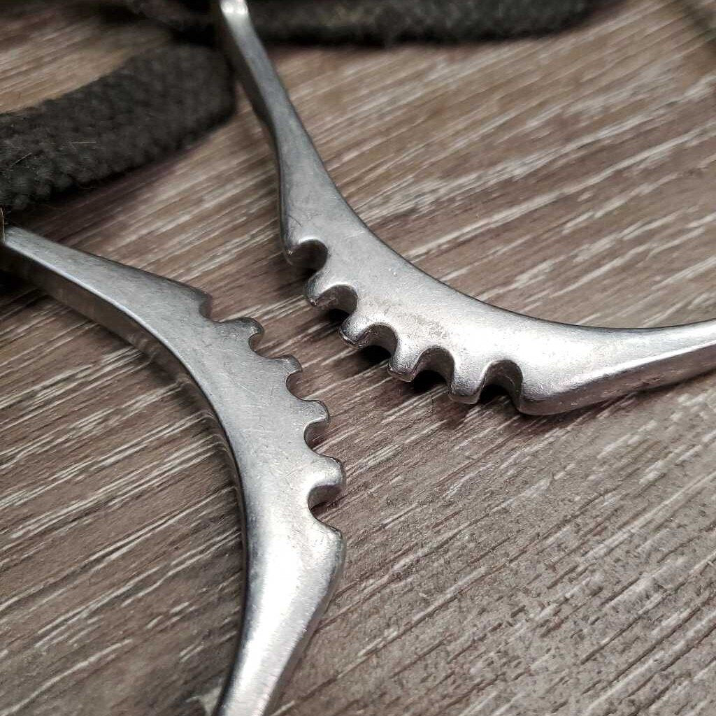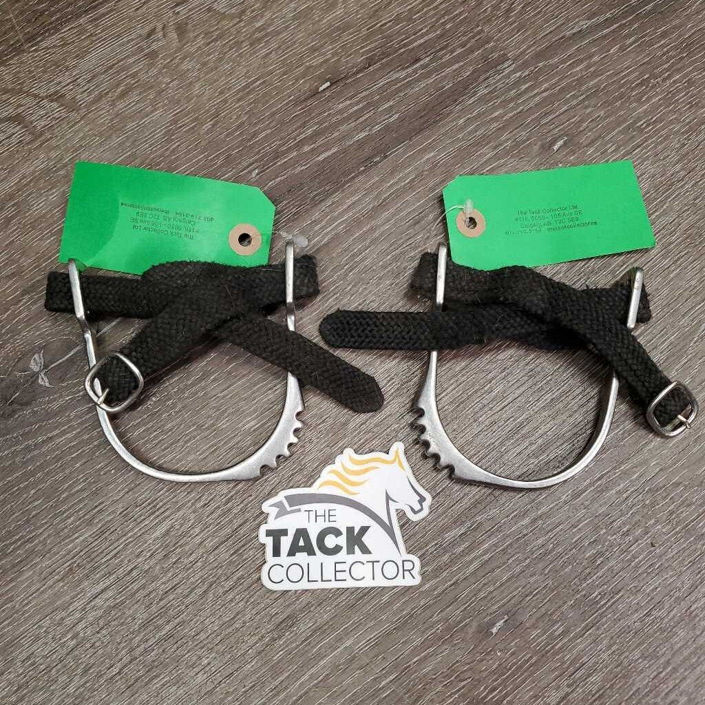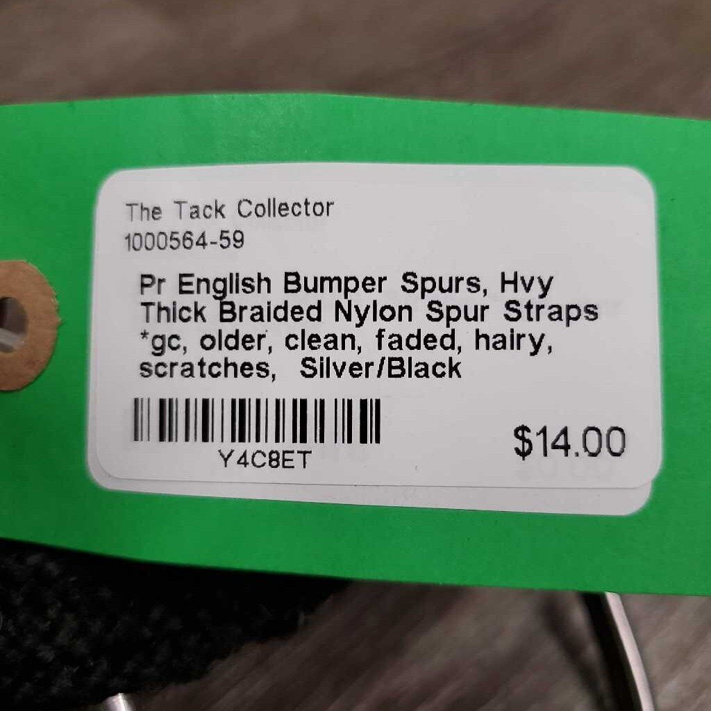 Pr English Bumper Spurs, Hvy Thick Braided Nylon Spur Straps *gc, older, clean, faded, hairy, scratches