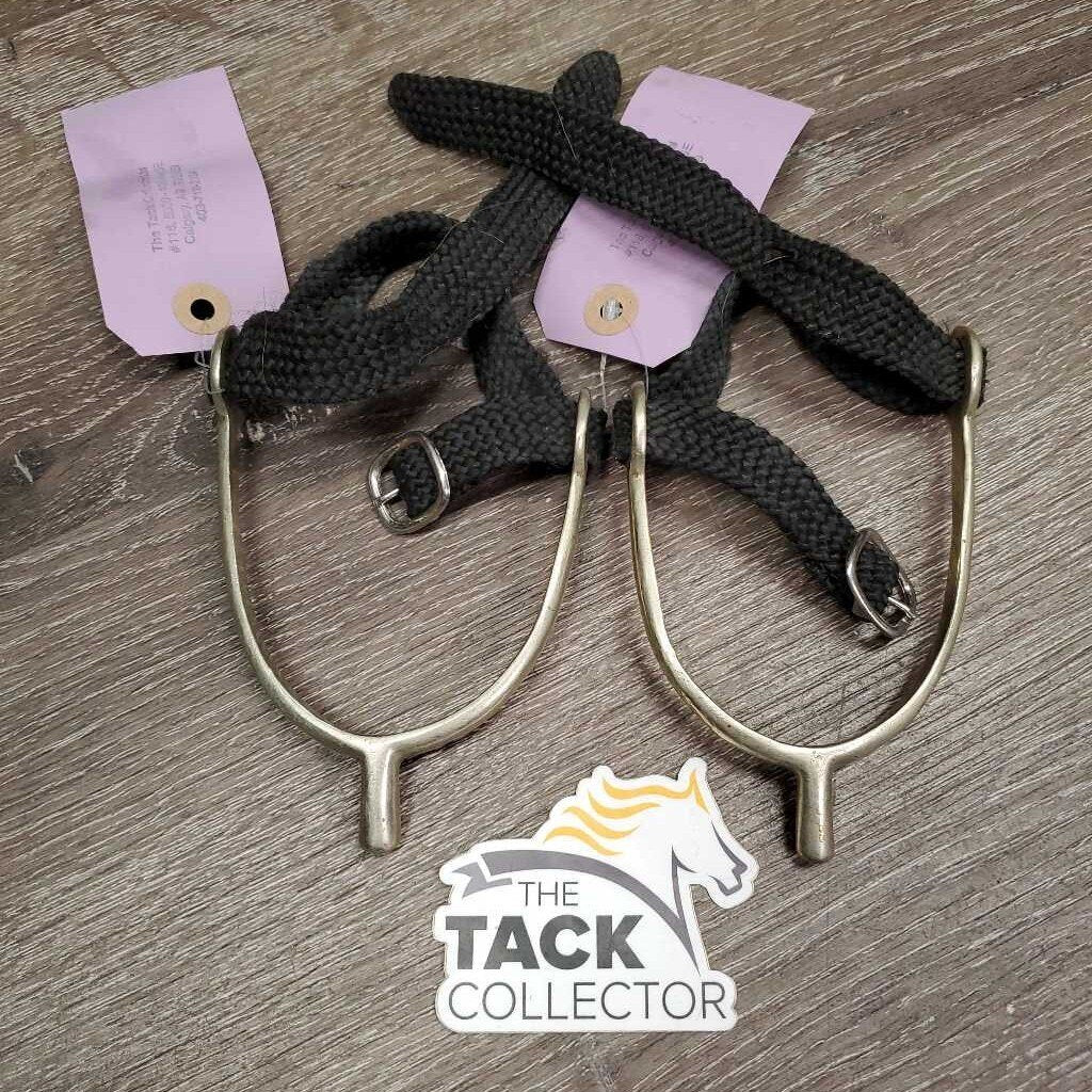 Pr Hvy POW Spurs, Wide Braided Nylon Spur Straps *vgc, older, mnr scuffs, stains, scratches, rubs & dirty straps