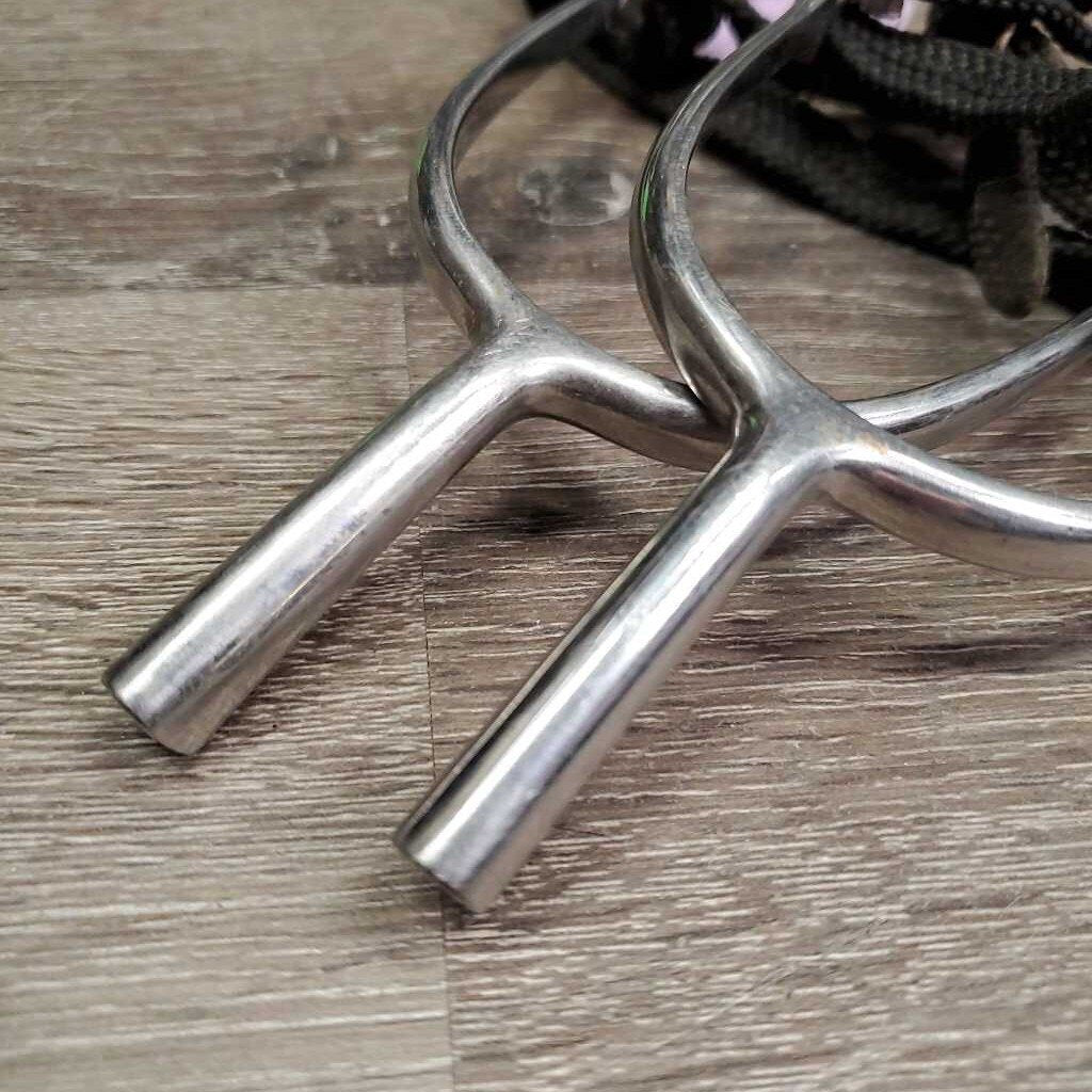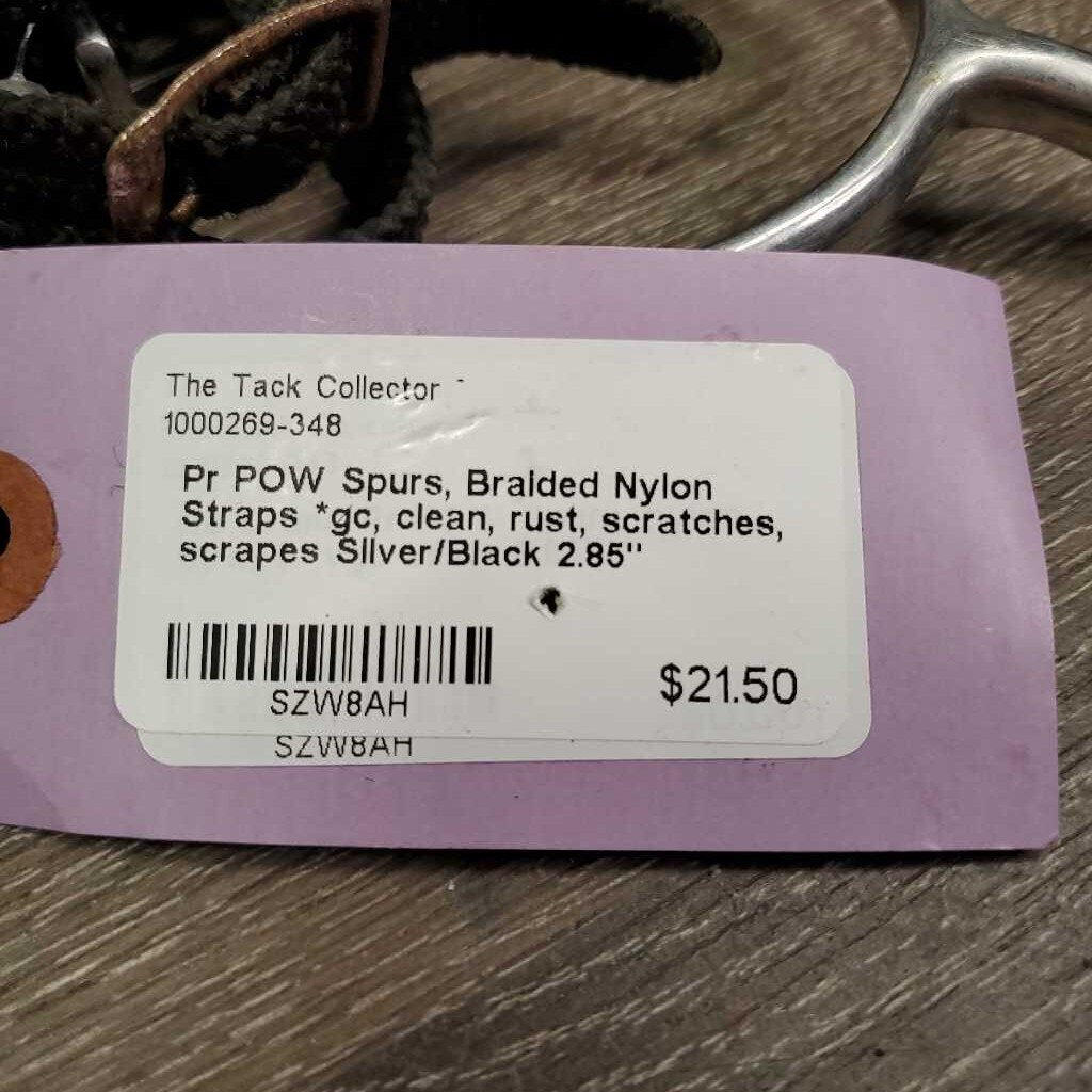 Pr POW Spurs, Braided Nylon Straps *gc, clean, rust, scratches, scrapes