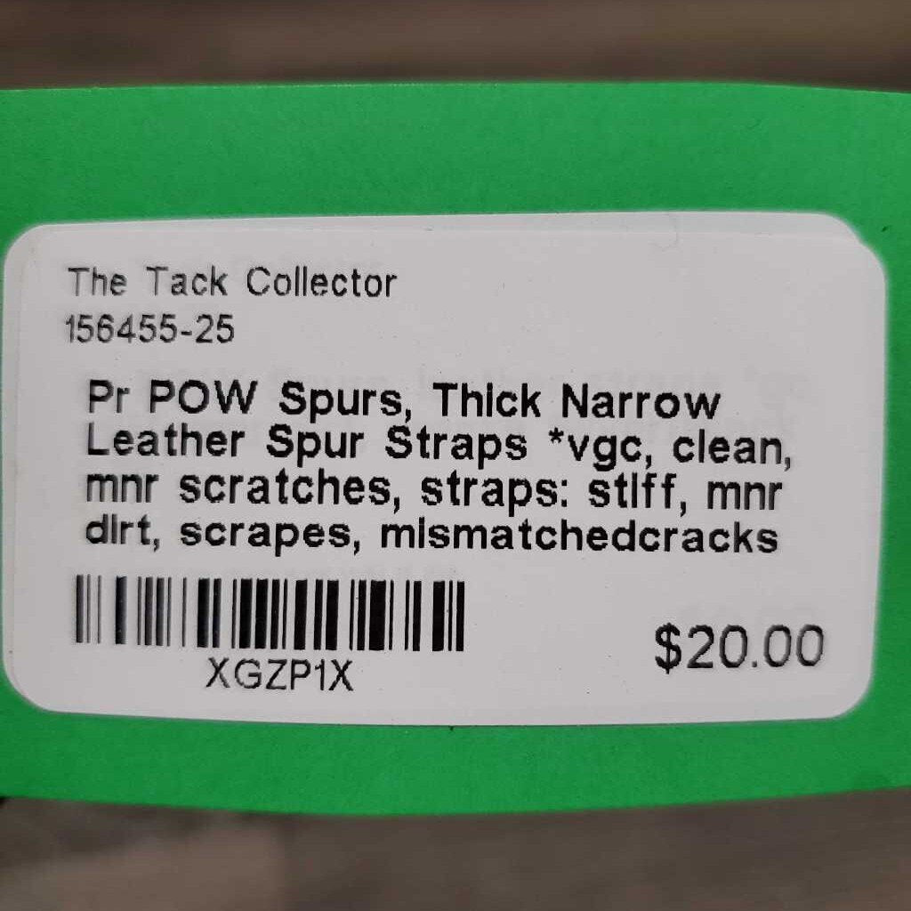 Pr POW Spurs, Thick Narrow Leather Spur Straps *vgc, clean, mnr scratches, straps: stiff, mnr dirt, scrapes, mismatchedcracks