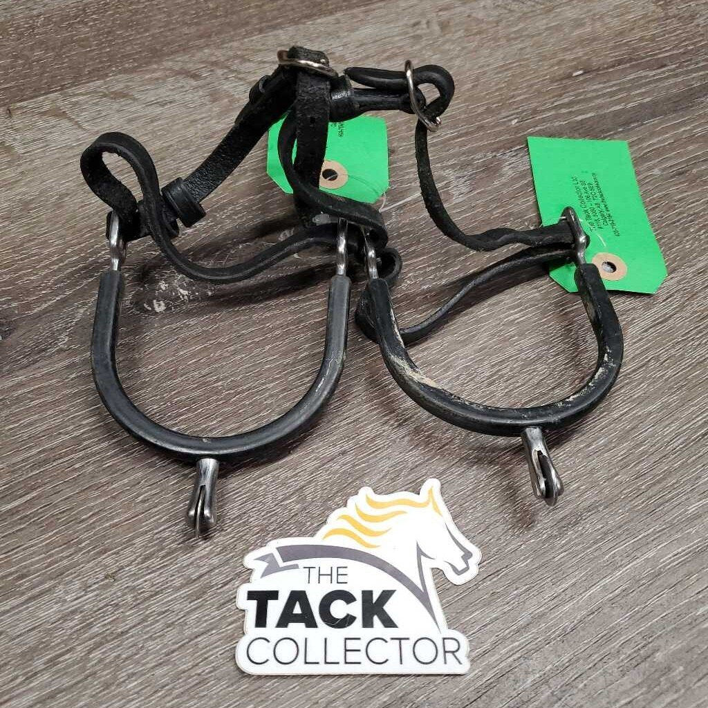 Pr Smooth Rowel Spurs, rubber guards, lthr straps *vgc/gc, mnr dirt, scuffs
