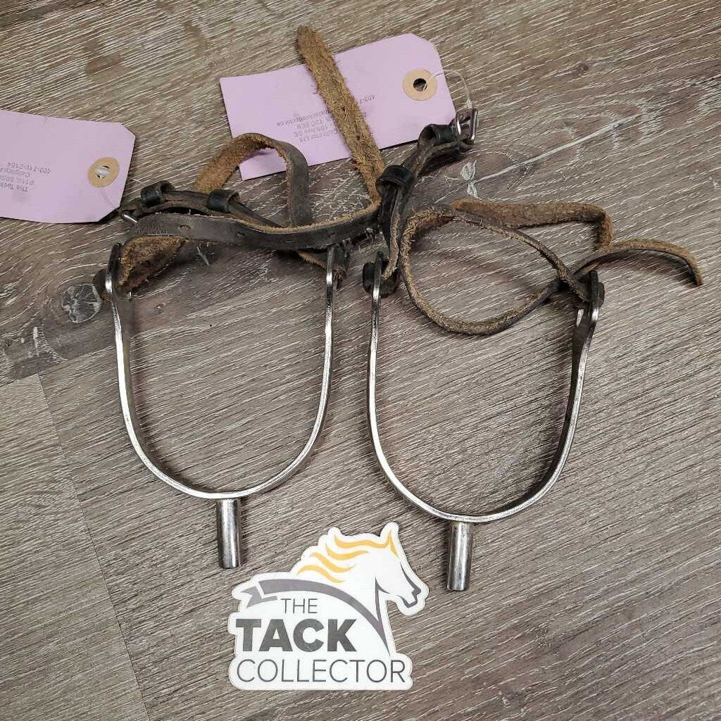 Pr Spurs, Narrow Leather Spur Straps *gc, dirt, stretched, xholes, scrapes, scratches, film/residue