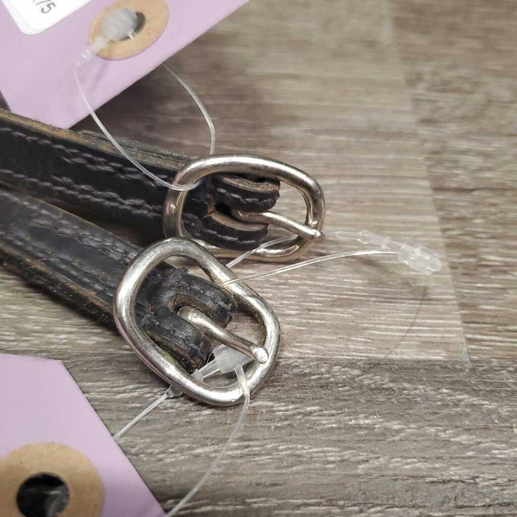 Thick Narrow Spur Straps *gc, clean, rubs, twisted, bent & scraped edges, v.stiff, dry