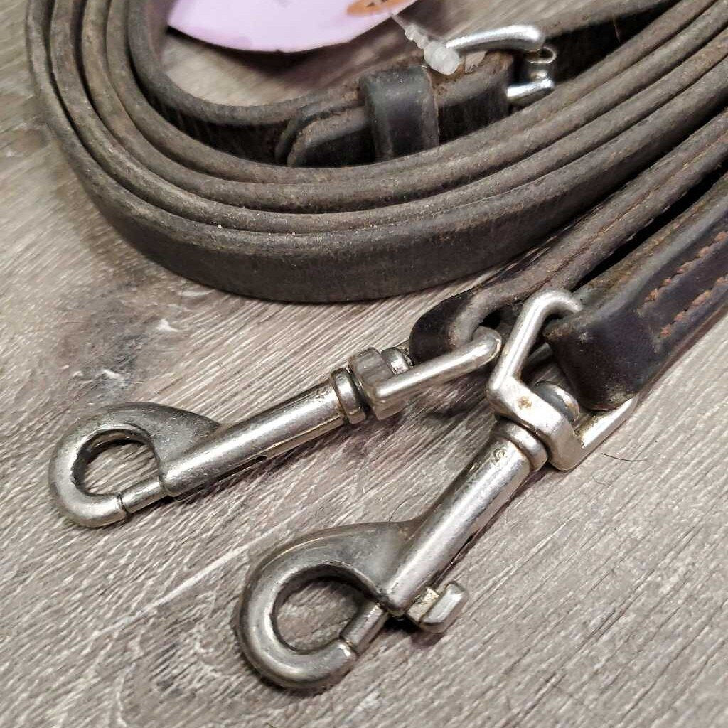 Narrow Soft Leather Draw Reins, snaps *gc, dirty, rubs, uneven