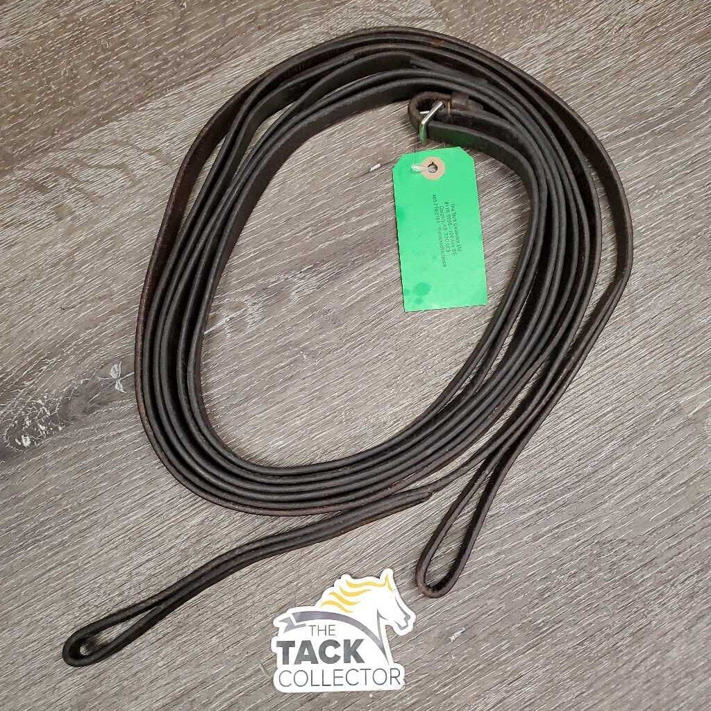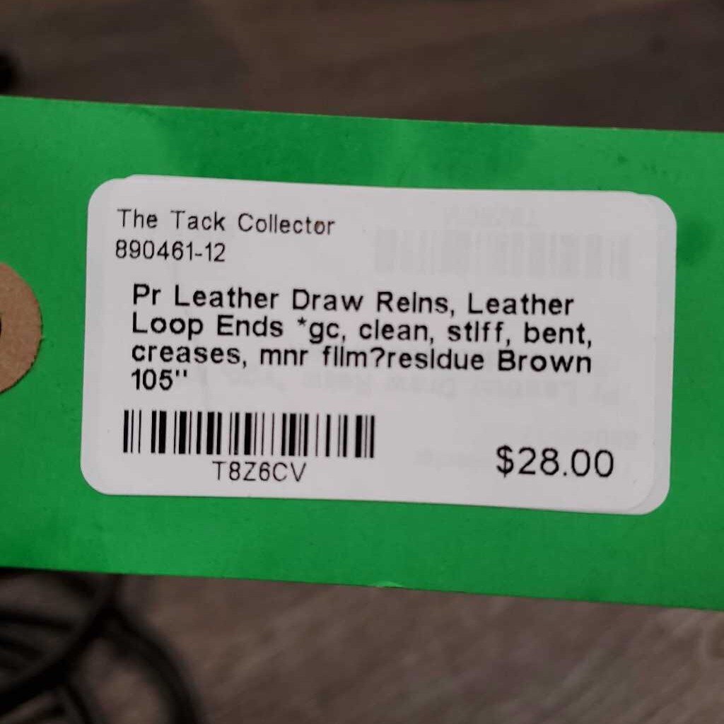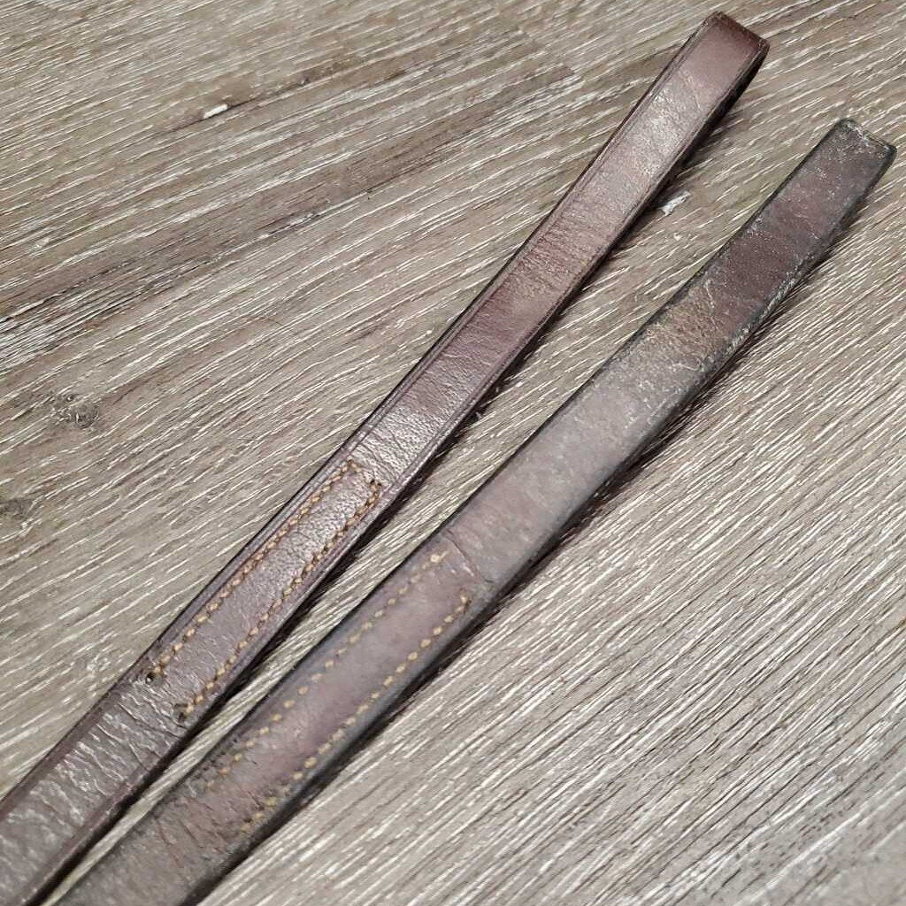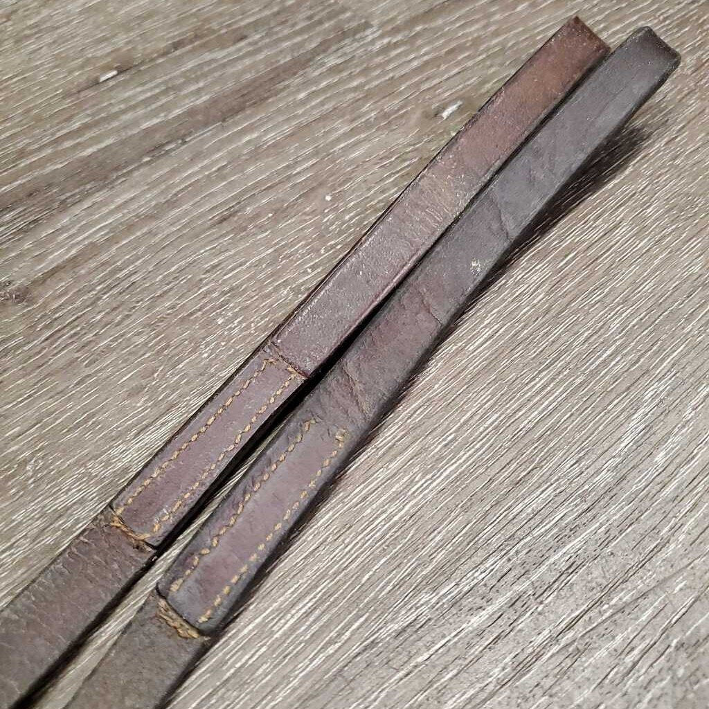 Pr Leather Draw Reins, Leather Loop Ends *gc, clean, stiff, bent, creases, mnr film?residue