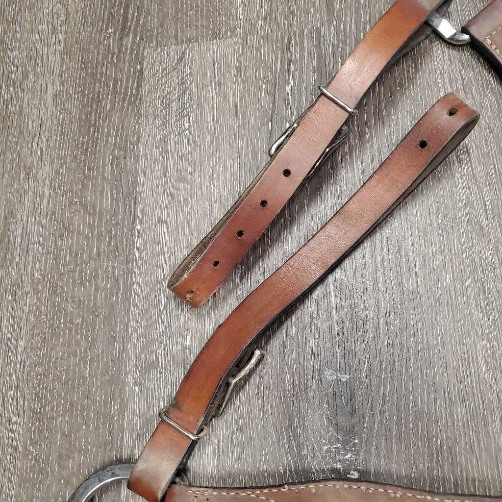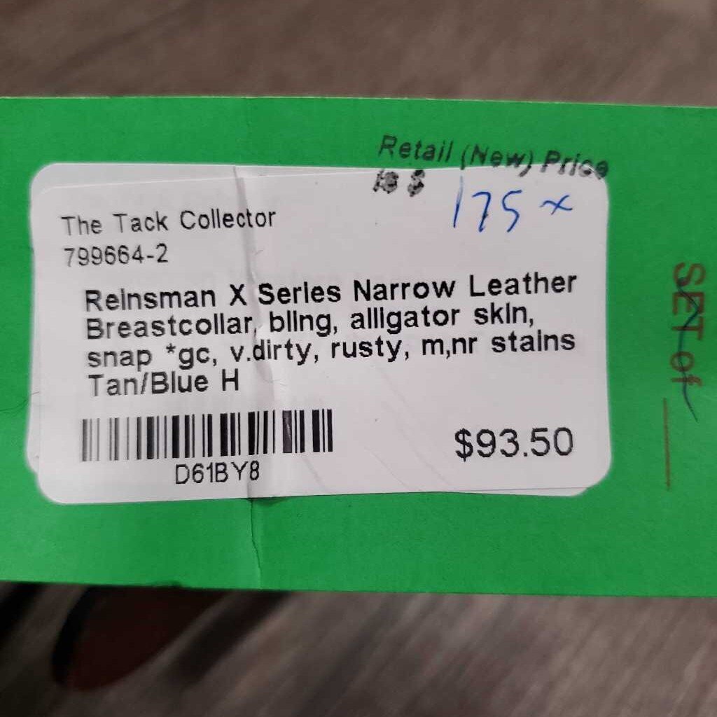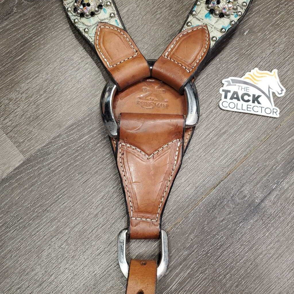 Narrow Leather Breastcollar, bling, alligator skin, snap *gc, v.dirty, rusty, m,nr stains
