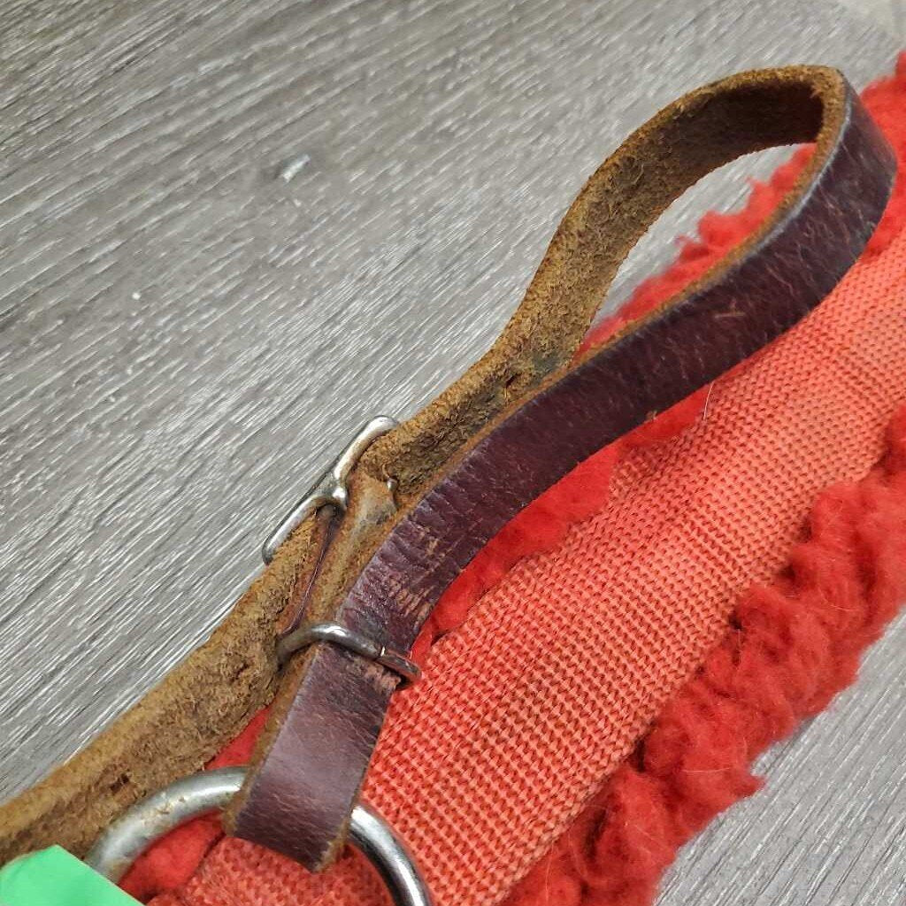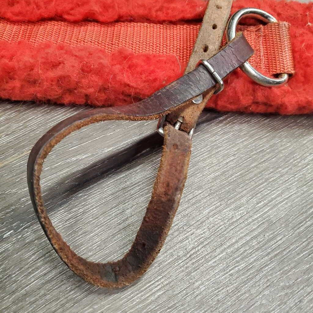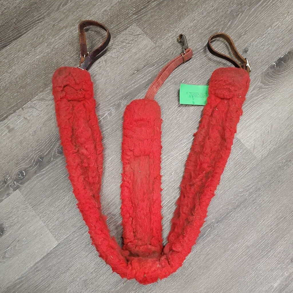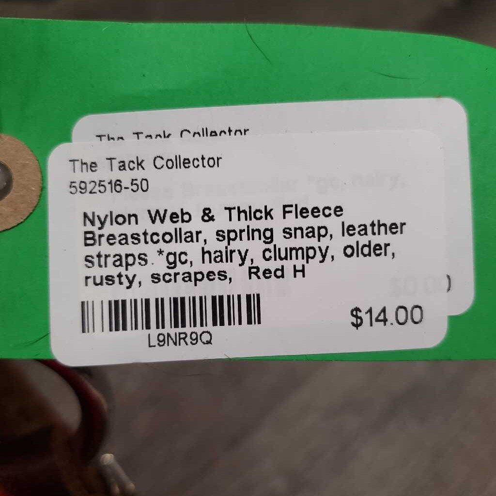 Nylon Web & Thick Fleece Breastcollar, spring snap, leather straps *gc, hairy, clumpy, older, rusty, scrapes